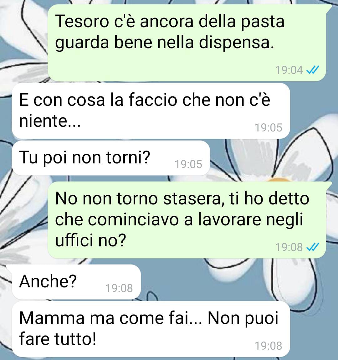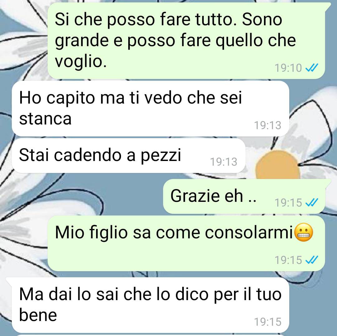 mi chiamo Lucia, ho quarantadue anni e sono una mamma che fa del suo meglio per tirare avanti. Due anni fa ho perso il lavoro e, con il sussidio di disoccupazione ormai esaurito, la situazione è diventata davvero dura. Il padre di Marco se n’è andato anni fa e si è completamente disinteressato di noi, quindi siamo solo io e mio figlio a cercare di farcela. Non è facile, ho dovuto accontentarmi di quello che ho trovato per portare soldi a casa. Mi sveglio prestissimo e faccio due lavori pesanti, ma riesco solo per riuscire a coprire le spese. Le bollette, l’affitto, il cibo: tutto sembra sempre più costoso e a fine mese è sempre un miracolo arrivarci. Non posso permettermi di fermarmi, devo farcela per Marco. Lui è davvero un ragazzo d’oro. Ha passato un anno a studiare biologia ma settembre inizierà medicina. Non potrei essere più fiera di lui! Nonostante l’università, vuole lavorare la sera per aiutarmi con le spese. Questo mi preoccupa: medicina è un corso tosto e temo che non riuscirà a gestire tutto. Un conto è dare ripetizioni, un conto è lavorare la sera o la notte e poi seguire studi così impegnativi… sono preoccupata è vero, ma sono anche incredibilmente orgogliosa della sua responsabilità e determinazione. Non so come farei senza di lui, è la mia forza e il mio orgoglio. Spero solo che troviamo un po’ di serenità presto.