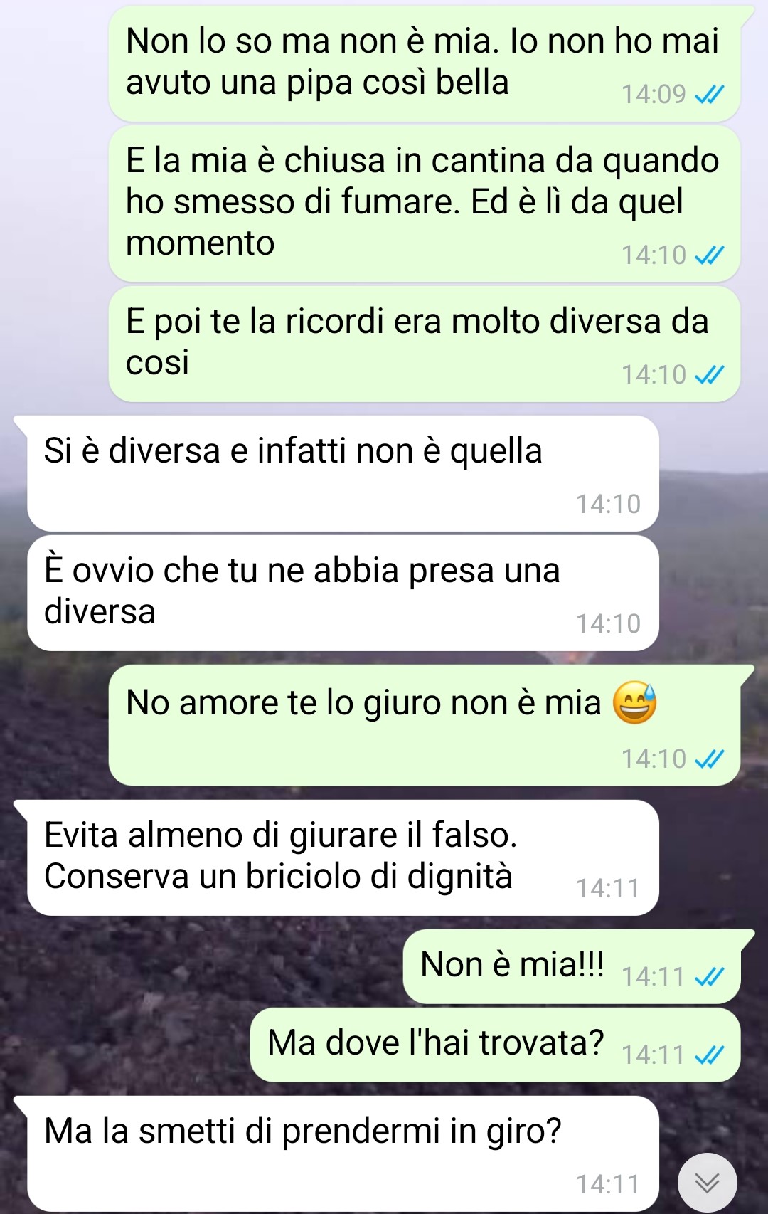 Ho iniziato a fumare quando avevo quattordici anni, molto presto purtroppo. Come credo per tutti, la prima volta è stata un po’ per curiosità un po’ per bisogno dell’approvazione altrui. Poi ho cominciato a smezzare un pacchetto di sigarette con un mio amico, e a quel punto è cominciato a diventare un vero e proprio vizio, perciò ho iniziato a prendere le sigarette solo per me. In seguito una mia compagna di classe mi ha insegnato a rollare, e da lì ho scoperto il mondo dei tabacchi. Fino a venticinque anni ho fumato parecchio, circa una ventina di sigarette al giorno, ma poi ho conosciuto la mia attuale moglie e ho deciso di smettere. Negli anni ho avuto diverse ricadute, ma ne ho sempre parlato con lei, che però riguardo al tema era piuttosto intollerante. Ma quando 12 anni fa è nato nostro figlio Alex, a quel punto ho giurato a me stesso che non avrei più toccato una sigaretta perché volevo dargli il buon esempio, e così è stato. Nei momenti di debolezza mi sono concesso solo qualche fumatina con la pipa che mio nonno mi regalò molto tempo fa ormai, ma niente di più. Il problema è sorto quando qualche giorno fa in casa è saltata fuori un’altra pipa.