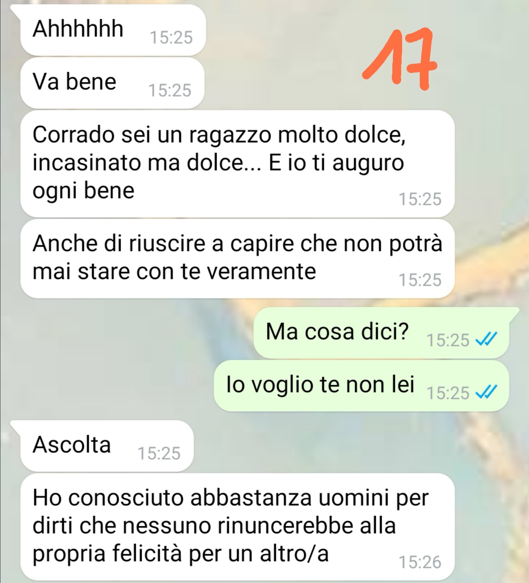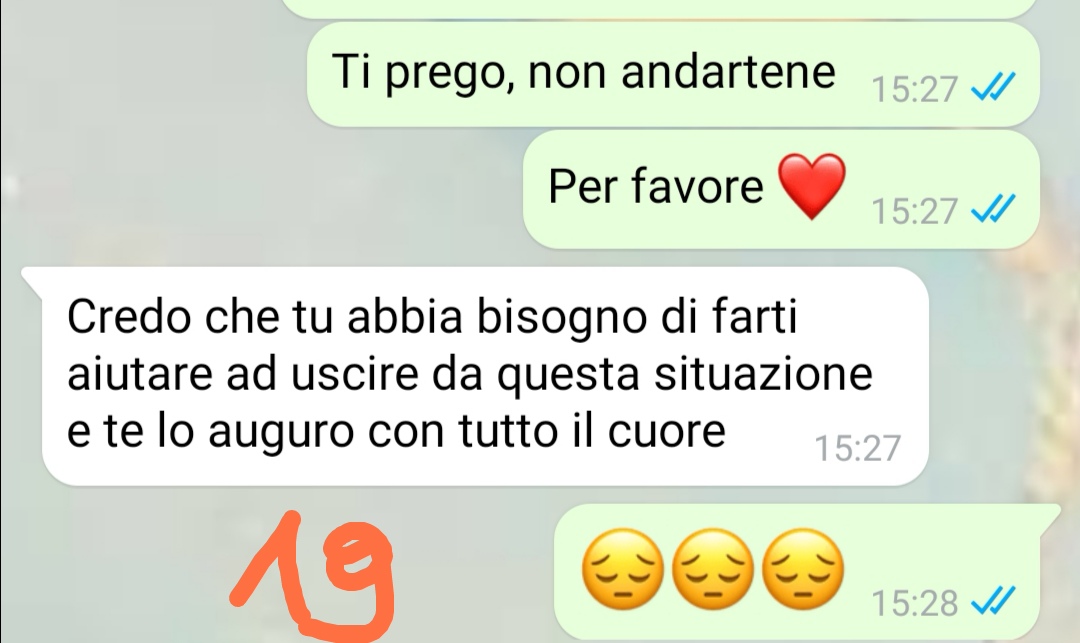 La nostra follower si è infuriata traendo delle conclusioni personali sulla situazione, mentre Corrado si trova nell’impossibilità di farle comprendere che le cose non stanno come lei crede. Il nostro amico si dichiara estremamente confuso e, pur non chiedendo direttamente aiuto, ha deciso di condividere la sua storia sperando che le opinioni di persone esterne e non coinvolte possano offrirgli indirettamente qualche spunto di riflessione.