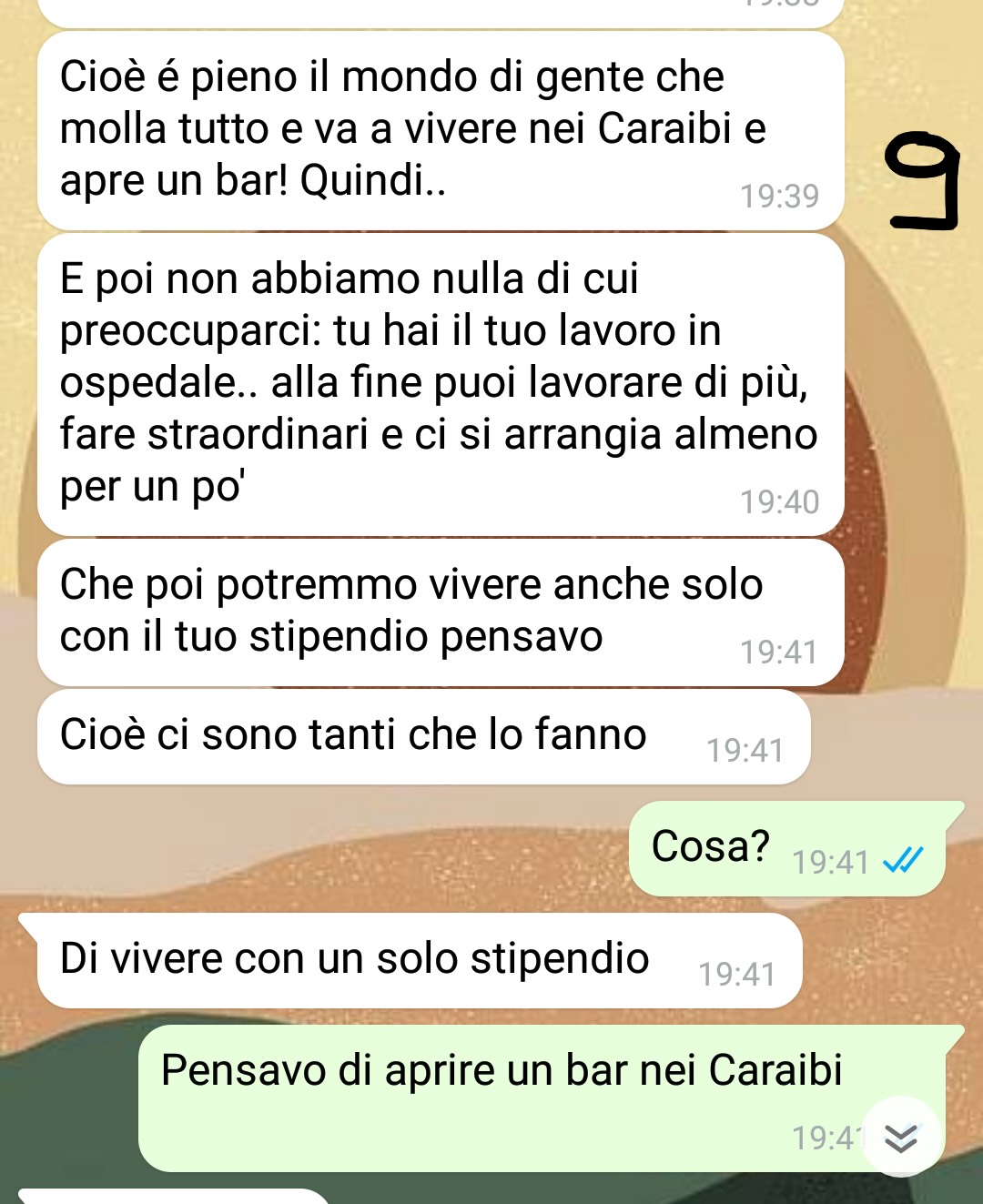Il momento critico è arrivato quando Piero ha iniziato a parlare seriamente di “mollare tutto”. Una frase che, per Sabina, è sembrata una coltellata: non solo per il significato in sé, ma anche per la leggerezza con cui è stata pronunciata. La nostra amica racconta che, in quel momento, ha perso la pazienza. Secondo lei, suo marito non ha la minima percezione della realtà del mondo del lavoro oggi, né si rende conto di quanto sia privilegiato rispetto a tante persone che ogni giorno lottano per arrivare a fine mese.