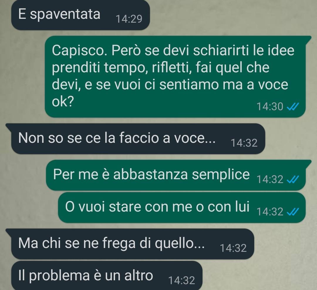Tuttavia, si sono resi conto di essere stati troppo ottimisti, poiché c’era uno scenario che non avevano considerato. La loro logica e le loro regole, sebbene ben pensate, non hanno previsto una complicazione imprevista che è emersa nel loro rapporto. Nella conversazione allegata, probabilmente si esplora questo scenario non previsto e le conseguenze che ha avuto sulla loro dinamica.