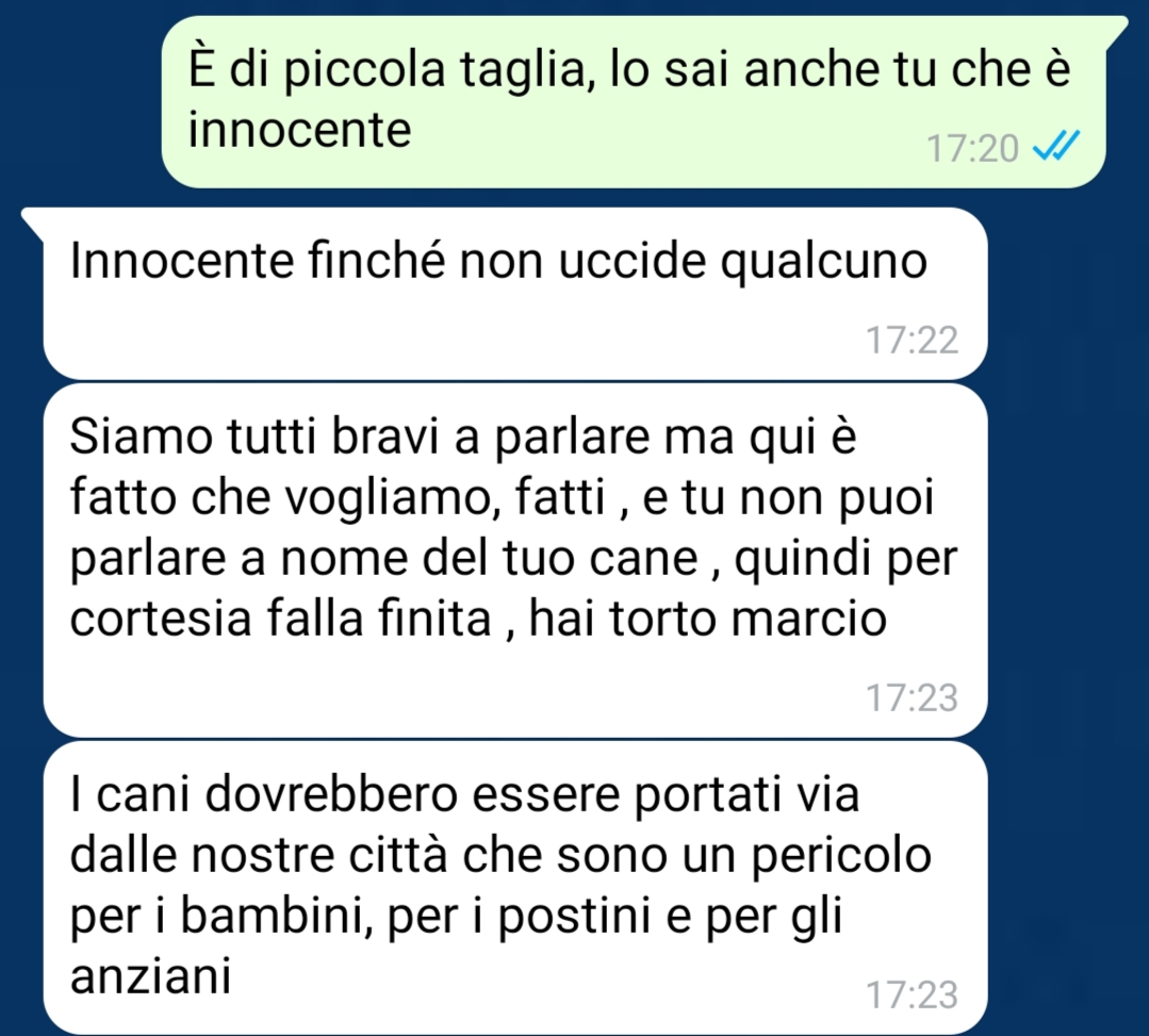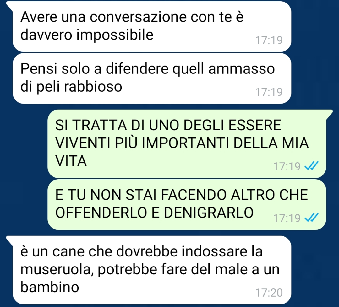 Nel suo racconto, Loriana pone una domanda che per lei è centrale: se nessuno metterebbe mai la museruola a un figlio, perché dovrebbe essere obbligatorio metterla a un cane che considera come tale? Questa riflessione è stata proprio il fulcro della conversazione con la vicina, che, secondo quanto riferito, non avrebbe mostrato comprensione per il suo punto di vista.