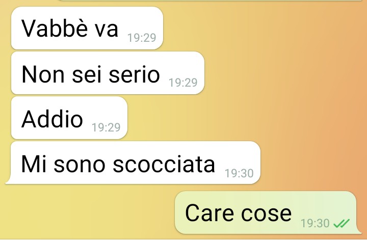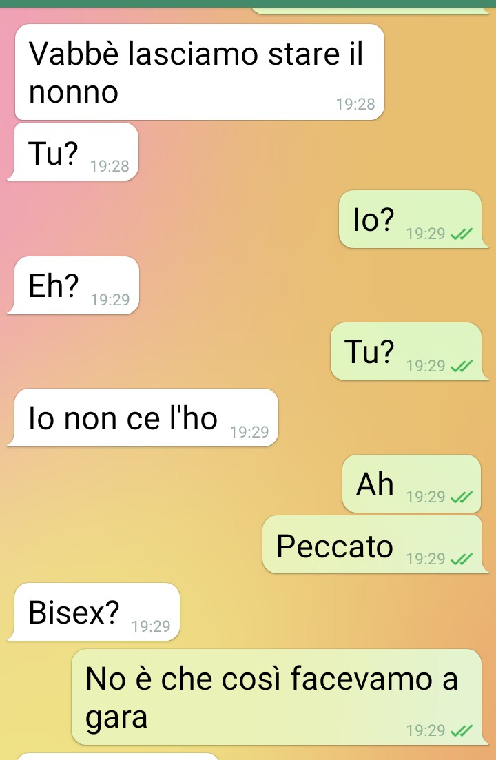 Per il nostro follower, però, tutto si sarebbe arenato proprio a causa di questo approccio troppo particolare: afferma che, per lei, il tipo di mutanda sarebbe direttamente proporzionale al livello di attrazione, quasi come se ci fosse un’equazione tra intimo e desiderio. Questo dettaglio, a suo dire, ha segnato la fine della conversazione. Il nostro fan conclude spiegando che quella è stata la loro prima e ultima chat, ma che l’intero scambio, a suo parere, meritava di essere condiviso con la community di Commenti Memorabili.