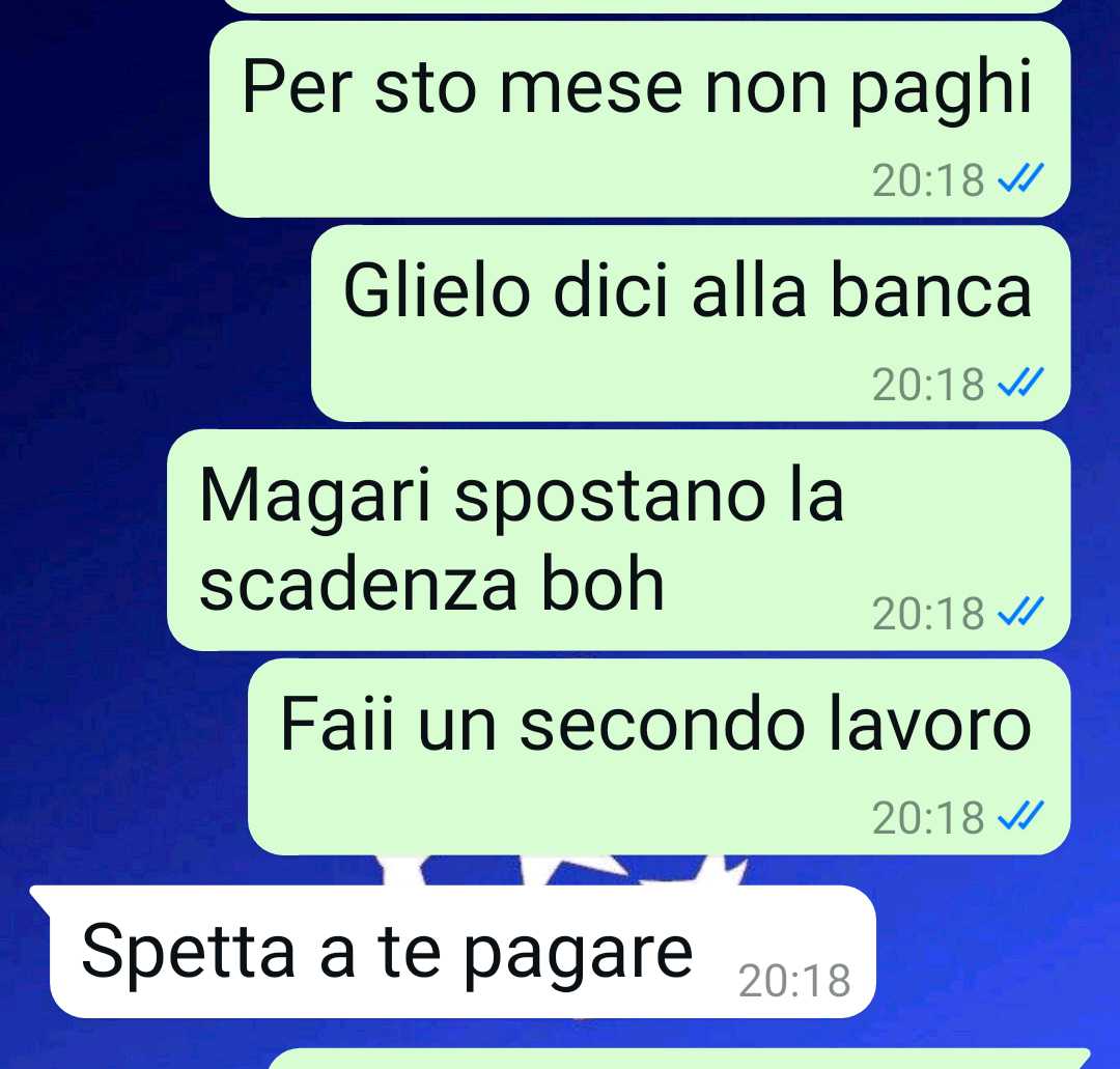 Attualmente il fratello della nostra amica le chiede di contribuire al pagamento delle rate mensili del mutuo, che ammontano a 700 euro. La donna si trova così nella paradossale situazione di dover pagare per un mutuo senza beneficiare della proprietà dell’immobile. Il rapporto con il fratello viene descritto come cordiale ma non particolarmente stretto: si vogliono bene ma non sono mai stati molto legati. Pur essendo disposta ad aiutarlo, la fan non ritiene di potersi fare carico completamente delle sue rate mensili.