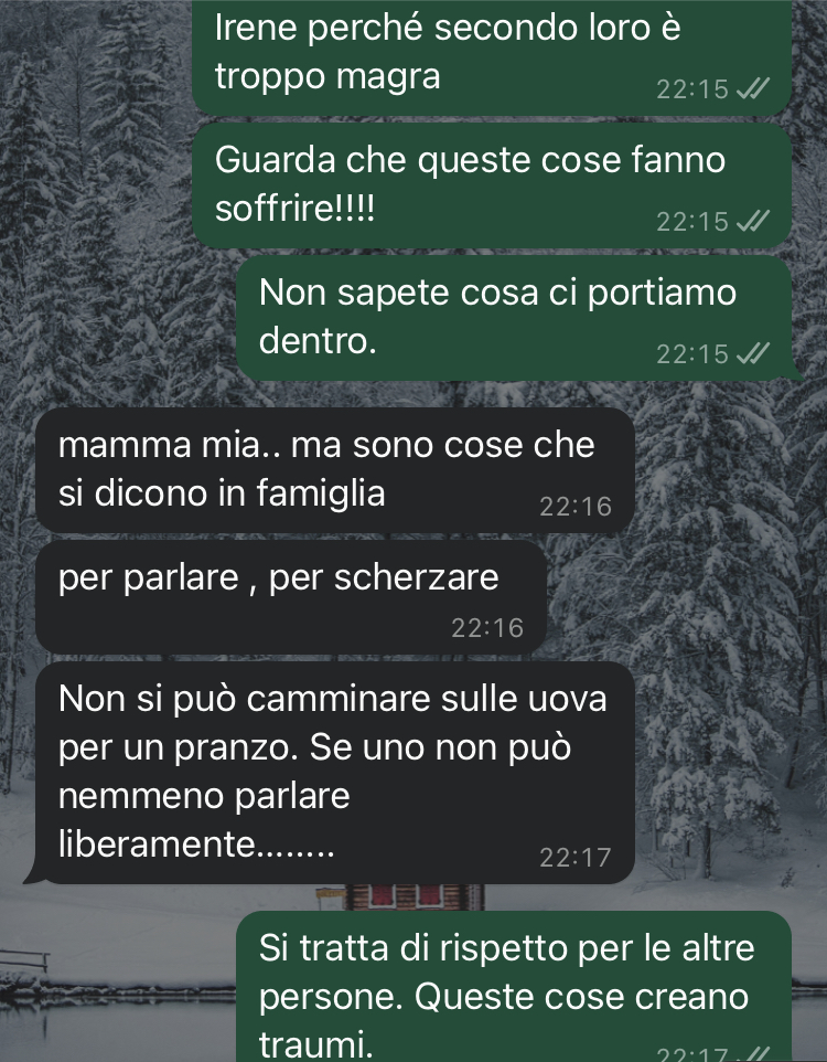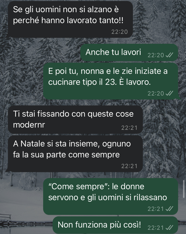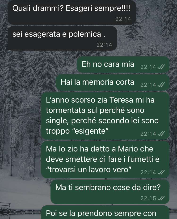 Il nostro fan si trova ad affrontare un dilemma natalizio che coinvolge l’intera famiglia allargata. Con l’avvicinarsi delle festività, sia lui che i suoi cugini stanno già vivendo l’ansia dei tradizionali pranzi familiari, diventati ormai un appuntamento temuto più che desiderato. La famiglia dell’amico è caratterizzata da una grande varietà di personalità e scelte di vita: ci sono parenti vegani, un cugino fumettista e altre persone con stili di vita considerati non convenzionali dal resto della famiglia. Tuttavia, anche chi non ha fatto scelte particolari finisce inevitabilmente nel mirino delle critiche e dei commenti inopportuni.