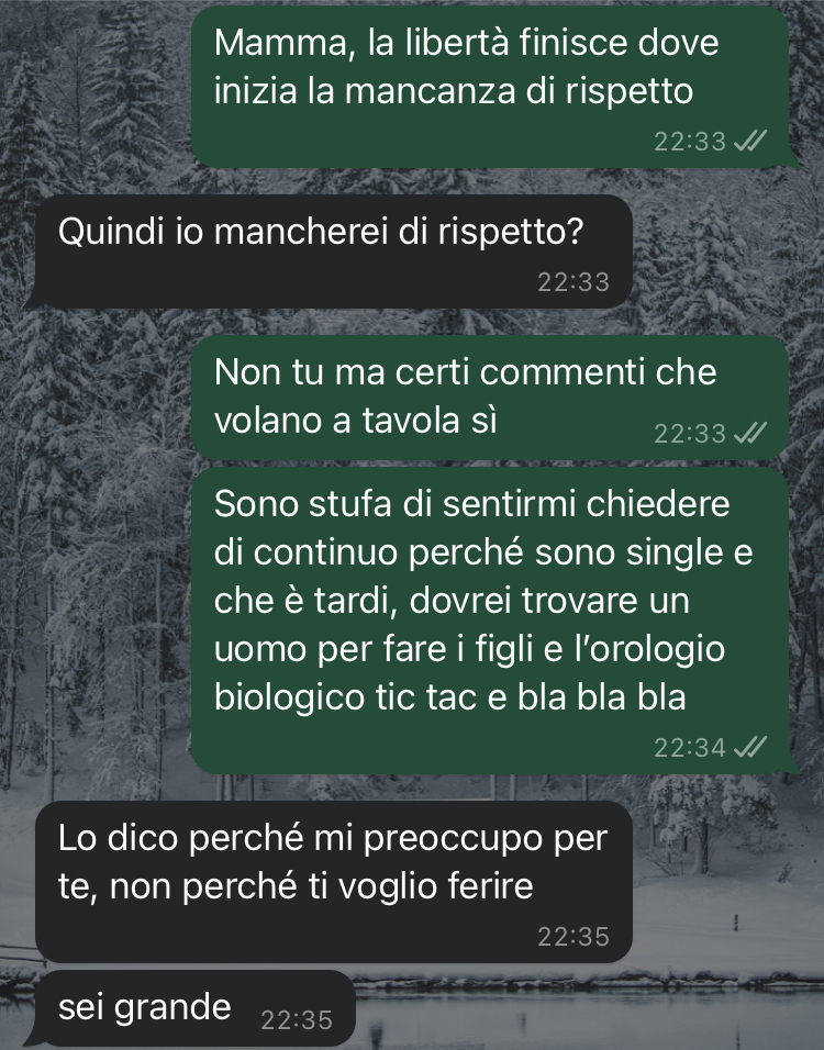 Durante questi incontri familiari, il clima diventa sistematicamente tossico a causa delle domande provocatorie e dei giudizi costanti. Il cugino gay della nostra follower deve sopportare ogni anno battute offensive mascherate da simpatia da parte dei parenti più anziani. Altri membri della famiglia subiscono commenti sul loro aspetto fisico, con osservazioni sul peso e sull’alimentazione che creano disagio e imbarazzo. Le domande esistenziali non mancano mai: matrimonio, figli, solitudine diventano argomenti di discussione forzata, mentre anche le scelte professionali vengono sistematicamente sminuite e criticate.