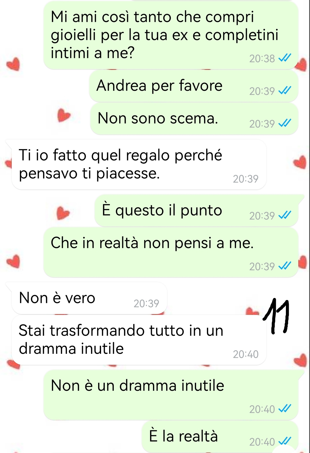 Qualche giorno prima delle festività natalizie, mentre aspettava in auto che Andrea comprasse le sigarette, la nostra amica ha notato un pacchettino sul sedile dell’auto. All’interno del pacchetto non sigillato ha scoperto un anello con uno smeraldo verde, proprio il suo colore preferito. Questo ritrovamento ha fatto nascere in lei grandi aspettative, immaginando che il compagno stesse per proporle un passo importante nella loro relazione. L’emozione e l’attesa per quel regalo speciale hanno accompagnato i suoi pensieri fino al giorno di Natale, quando invece di ricevere l’anello tanto desiderato, Andrea le ha donato un completino intimo.