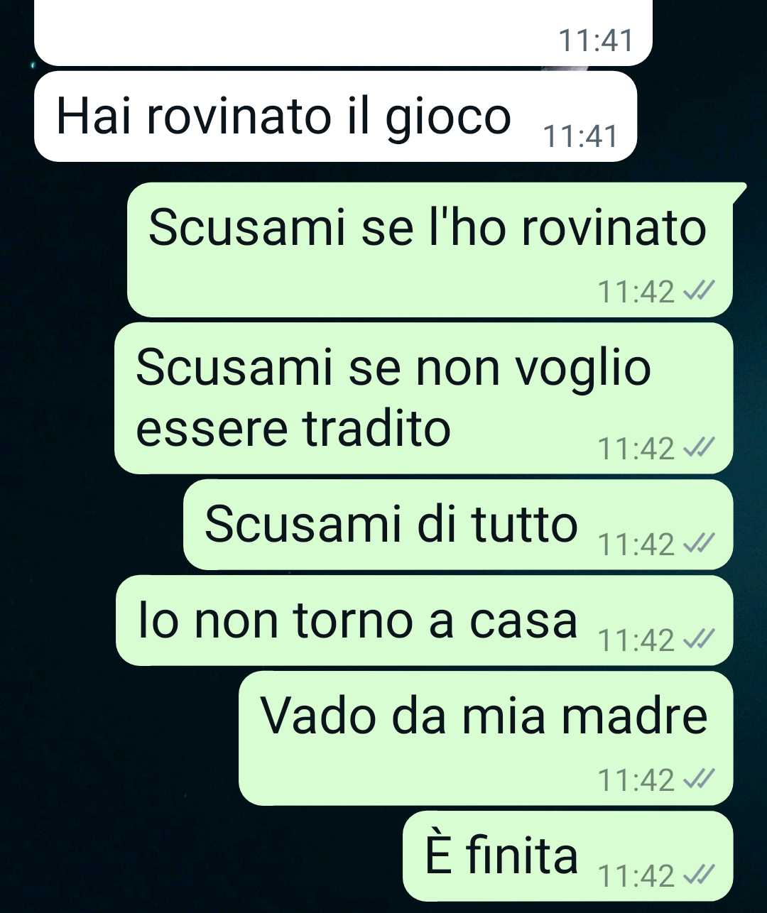 Conclude il suo racconto scrivendo che non sa se troverà mai pace dopo quello che è successo, ma che una cosa è certa: non esiste dolore più grande di quello di scoprire che la persona a cui stavi per dire “per sempre” ha distrutto tutto in una sola notte.
