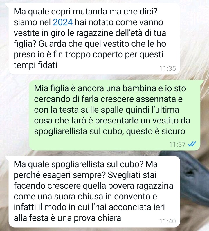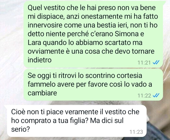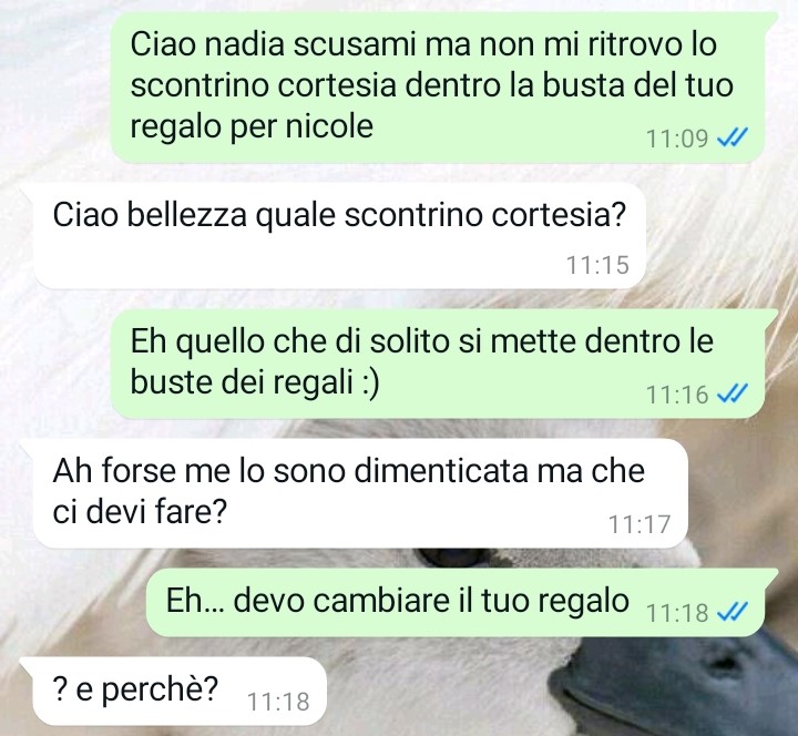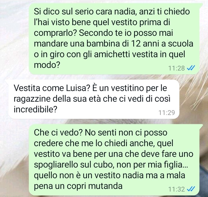 Il mio nome è Luisa e mi trovo qui a scrivervi per una questione che definisco paradossale e incredibile. Ho una figlia di 12 anni, una bambina bellissima che si chiama Nicole. Mia figlia Nicole è sempre stata una bambina giudiziosa, educatissima e assennata… una di quelle rarissime bambine che io definisco con la testa sulle spalle fin dalla nascita. Ieri abbiamo festeggiato il suo dodicesimo compleanno, invitando alcuni suoi amichetti a casa nostra, ma purtroppo tra i regali che abbiamo scartato me ne sono ritrovata uno terribile tra le mani ed oggi ho subito contattato l’artefice diretta del “regalo” per cercare di mettere apposto le cose… leggete un po’ però che conversazione terribile mi sono ritrovata a dover affrontare così di colpo. A quanto pare io e mia figlia viviamo nel paradosso più assurdo per colpa dell’ignoranza degli altri…