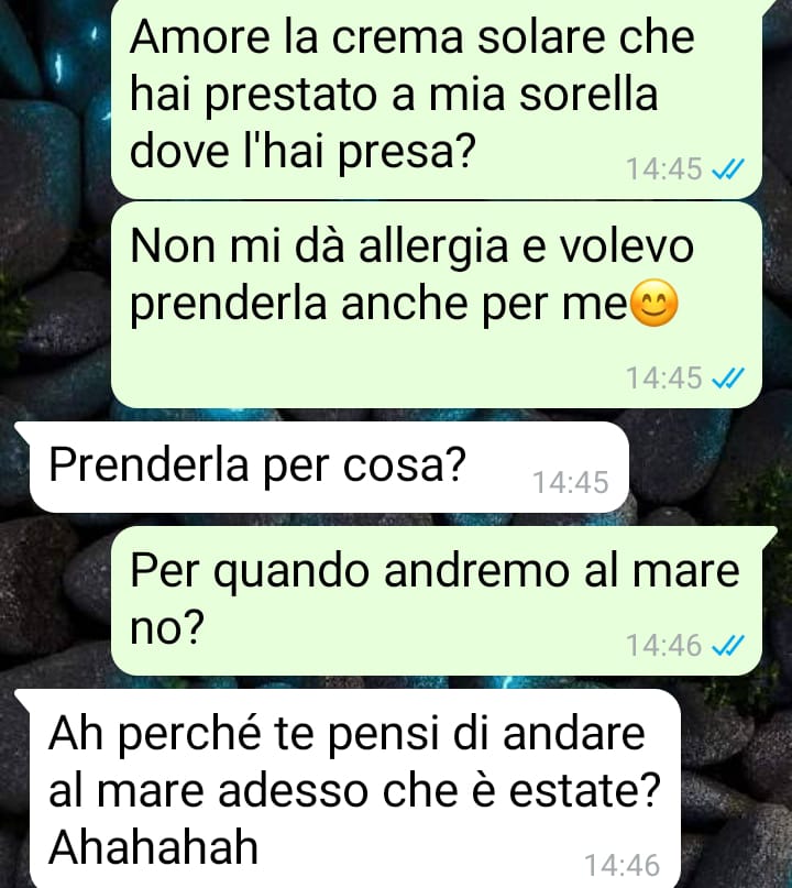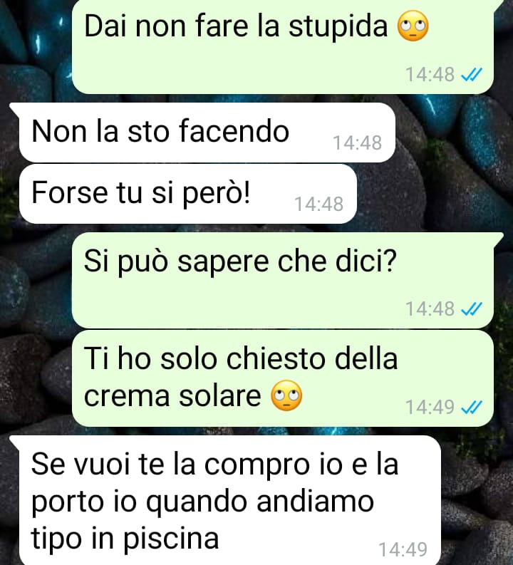 vorrei che questa la leggeste perché sono un ragazzo di 27 anni e vorrei in qualche modo far capire che ci siamo stufati di essere trattati così. Anche se è chiaramente brutta come cosa, ho lasciato la mia ragazza per messaggio, ma alla fine conferma solo la rabbia che provo per questi atteggiamenti. La cosa più assurda è che tutto è venuto fuori da una sciocchezza, una crema solare che la mia ragazza ha prestato a mia sorella e di cui volevo sapere la provenienza. Noi due ci frequentavamo da fine ottobre, perciò questa sarebbe stata la nostra prima estate insieme, finché poi lei non ha reagito in modo strano alla mia domanda. Alla mia richiesta di spiegazioni è uscita la sua vera personalità, una parte che non conoscevo e che aveva accuratamente evitato di mostrare. Vorrei tanto capire perché certe ragazze si fidanzano sapendo di avere certi problemi e certe ferite aperte. Non sarebbe meglio lavorare su noi stessi invece di andare a far perdere tempo agli altri?