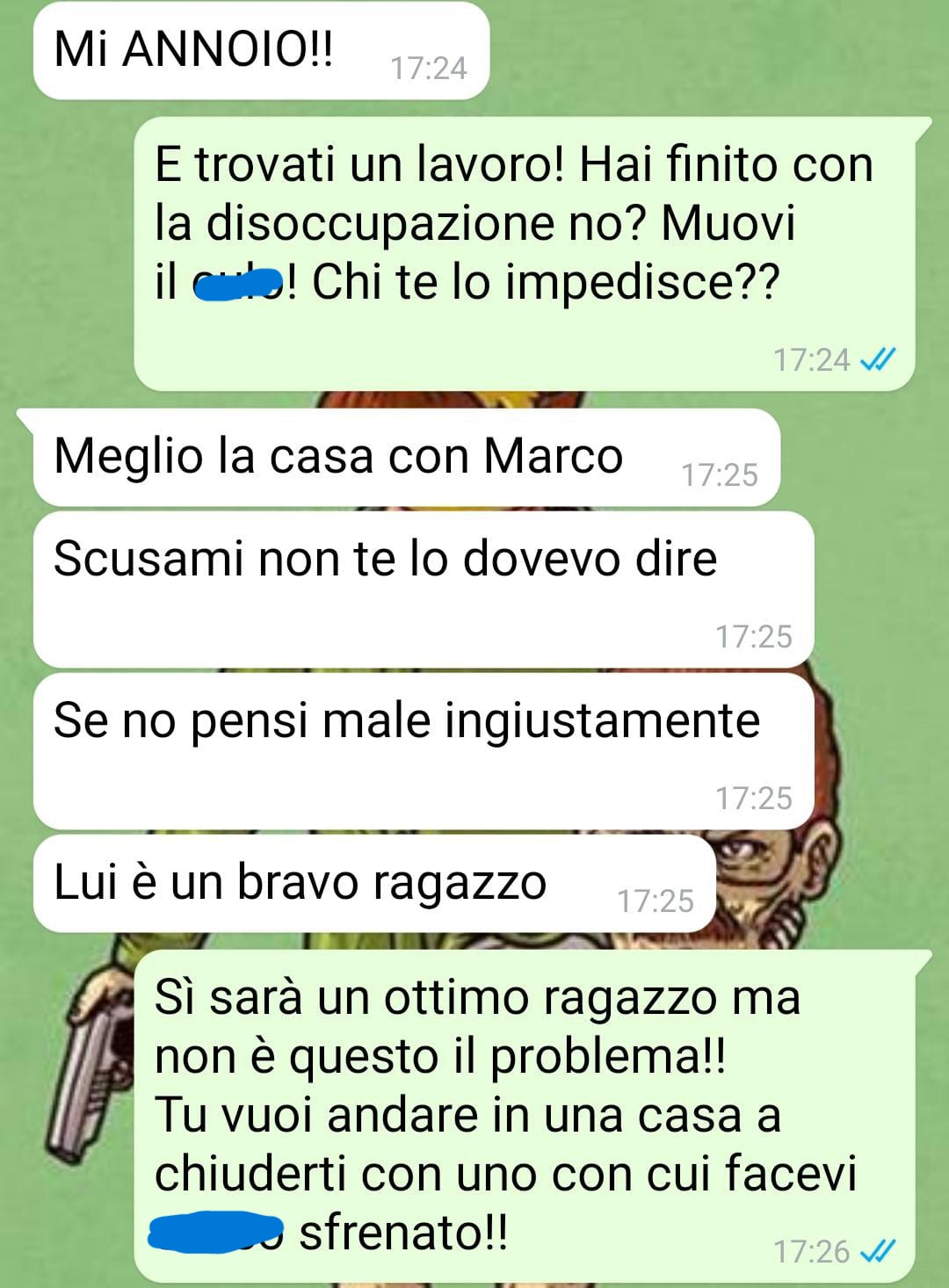 Secondo la sua visione, la ragazza sarebbe troppo dipendente dai genitori, che tenderebbero a viziarla. Vive ancora con loro, mentre lui abita da solo in un piccolo bilocale. In passato lei gli ha proposto di cercare insieme una casa più grande, ma lui ha risposto che questo passo si potrà fare solo quando lei mostrerà impegno nel cercare un’occupazione. Alla sua richiesta, la risposta della ragazza sarebbe stata evasiva: “sì sì, non c’è fretta”.
