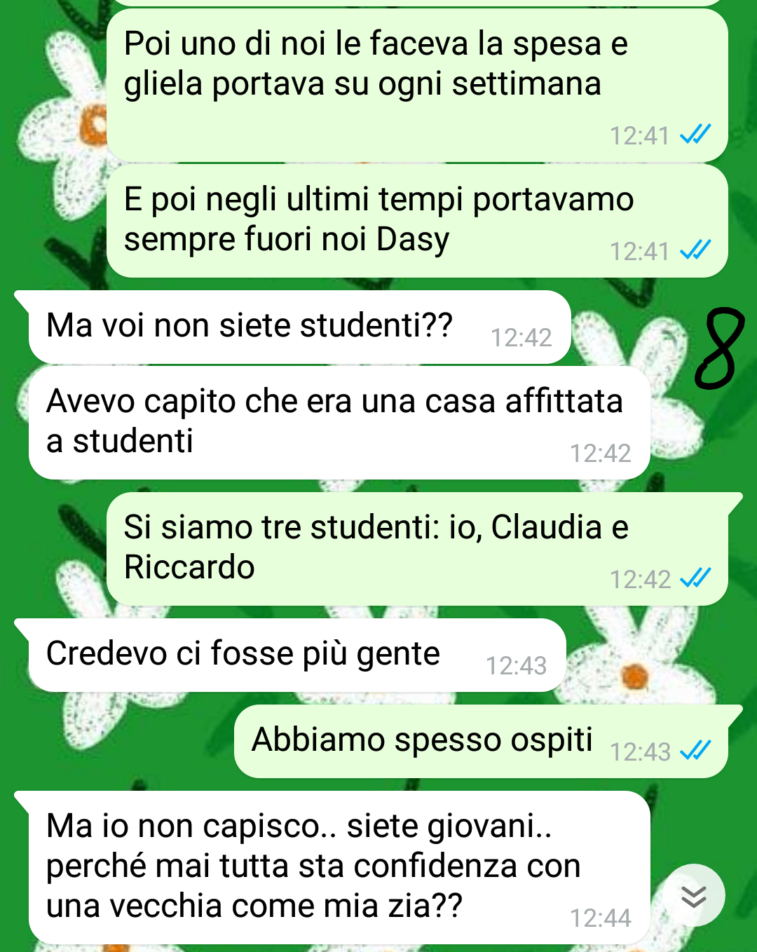 La nostra fan Maya si chiama e racconta di essersi trasferita dal suo paese natale in città per frequentare l’università. Come molti studenti fuori sede, ha deciso di prendere in affitto un appartamento in condivisione con due suoi amici e compagni di corso, Claudia e Riccardo. L’immobile che hanno scelto si trova in un piccolo stabile datato, privo di ascensore e composto da soli due piani. La struttura ospita un appartamento per ogni piano e al pianterreno un negozio chiuso da tempo, il che significa che avevano una sola vicina di casa.