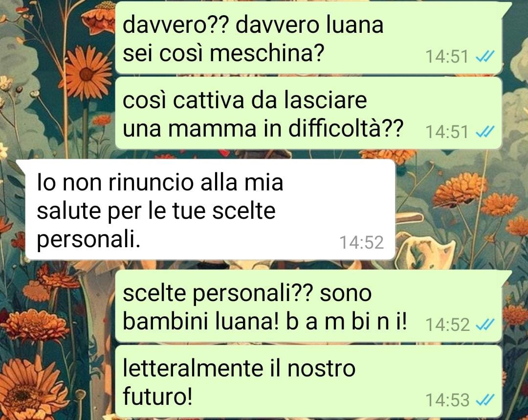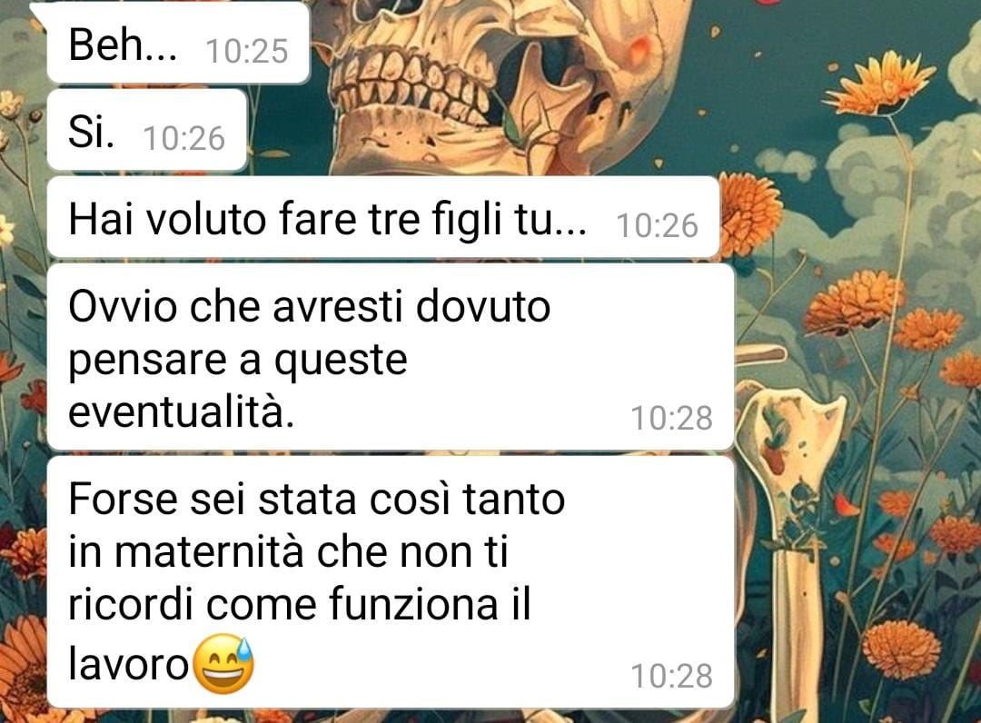 La nostra fan, Martina, lavora in una piccola azienda e ha deciso di condividere un episodio vissuto recentemente al rientro dal congedo di maternità. Dopo essere rimasta a casa per un lungo periodo, prolungato ulteriormente per motivi di salute legati al suo ultimo figlio, è tornata al lavoro trovando una nuova collega, Luana, assunta nel frattempo per rafforzare l’organico.
