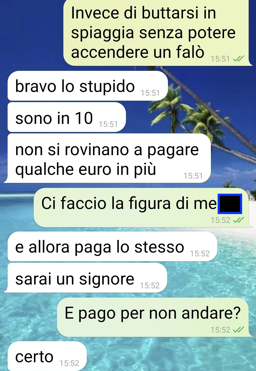 Quest’anno, però, il nostro follower aveva deciso di cambiare rotta. Dopo vari tentativi, è finalmente riuscito a organizzare una vera svolta: una villa disponibile last minute per due notti, dotata di piscina con idromassaggio, jacuzzi, barbecue e perfino una discoteca, il tutto a un prezzo molto conveniente. Colmo di entusiasmo, ha subito comunicato la notizia alla fidanzata, certo di renderla felice quanto lui.