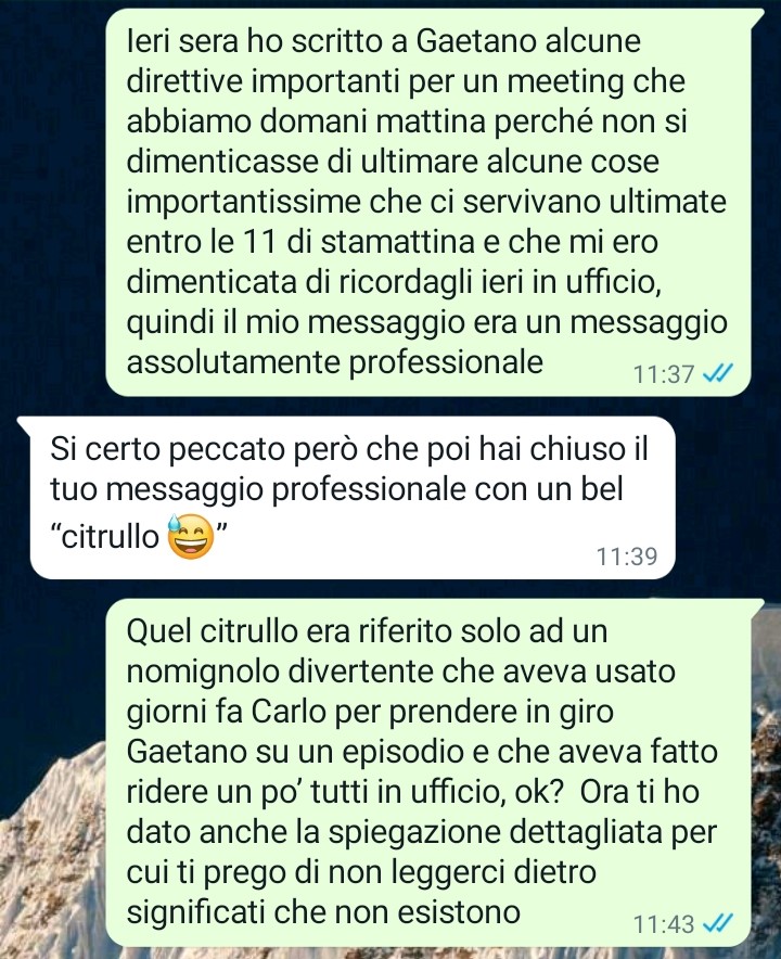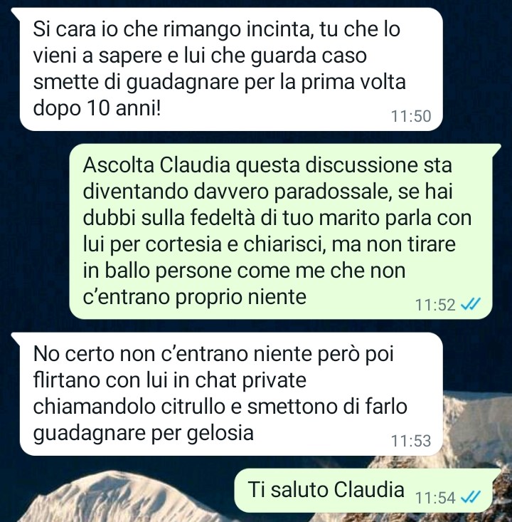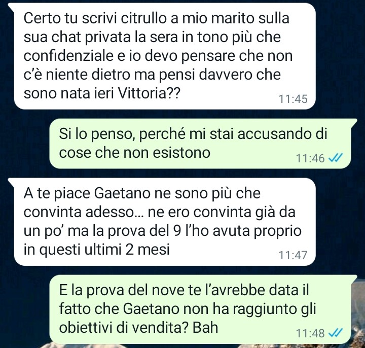 La nostra follower descrive il momento con grande amarezza, spiegando che ciò che ha vissuto si sta trasformando in un vero problema da gestire, soprattutto a causa di alcune accuse che lei ritiene completamente infondate. Parla apertamente di calunnie e manifesta un forte senso di smarrimento rispetto a come difendersi da ciò che sta accadendo. Vittoria invita chi legge a prendere visione della conversazione che ha inviato, convinta che attraverso quelle parole emergerà con chiarezza l’intera dinamica. La condivisione del suo vissuto nasce dalla necessità di portare alla luce una situazione complessa e, forse, trovare comprensione in chi ha vissuto qualcosa di simile o semplicemente riesce a coglierne la gravità.