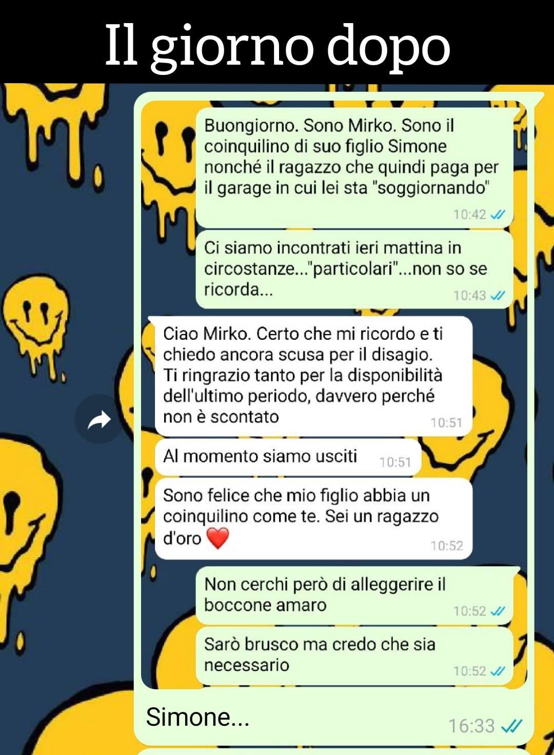 Queste sue caratteristiche hanno favorito negli anni una convivenza serena e collaborativa con diversi coinquilini. Il nostro follower è infatti proprietario di una casa situata in una zona universitaria e ha ospitato numerose persone che, versando un piccolo affitto, hanno condiviso gli spazi con lui in un clima disteso.