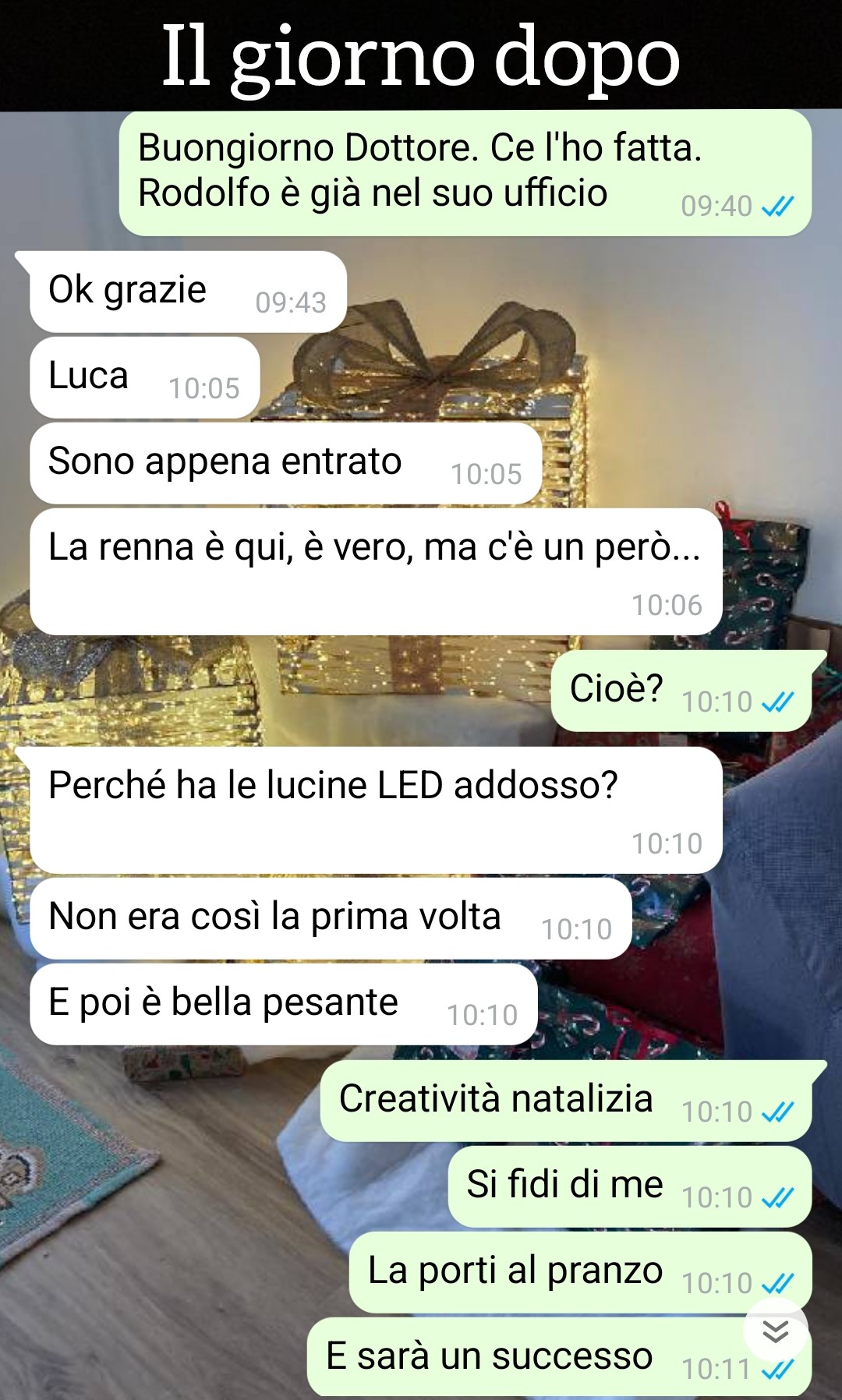 Tutto è cambiato quando l’amico ha deciso di portare in ufficio, molto prima del periodo natalizio e per puro divertimento, una renna di peluche di grandi dimensioni chiamata Rodolfo. Inaspettatamente, il Dottore si è completamente infatuato di questo oggetto, sviluppando una vera e propria ossessione per il pupazzo. La reazione del capo ha sorpreso tutti, considerando la sua personalità abitualmente severa e poco incline alle manifestazioni di affetto o divertimento.