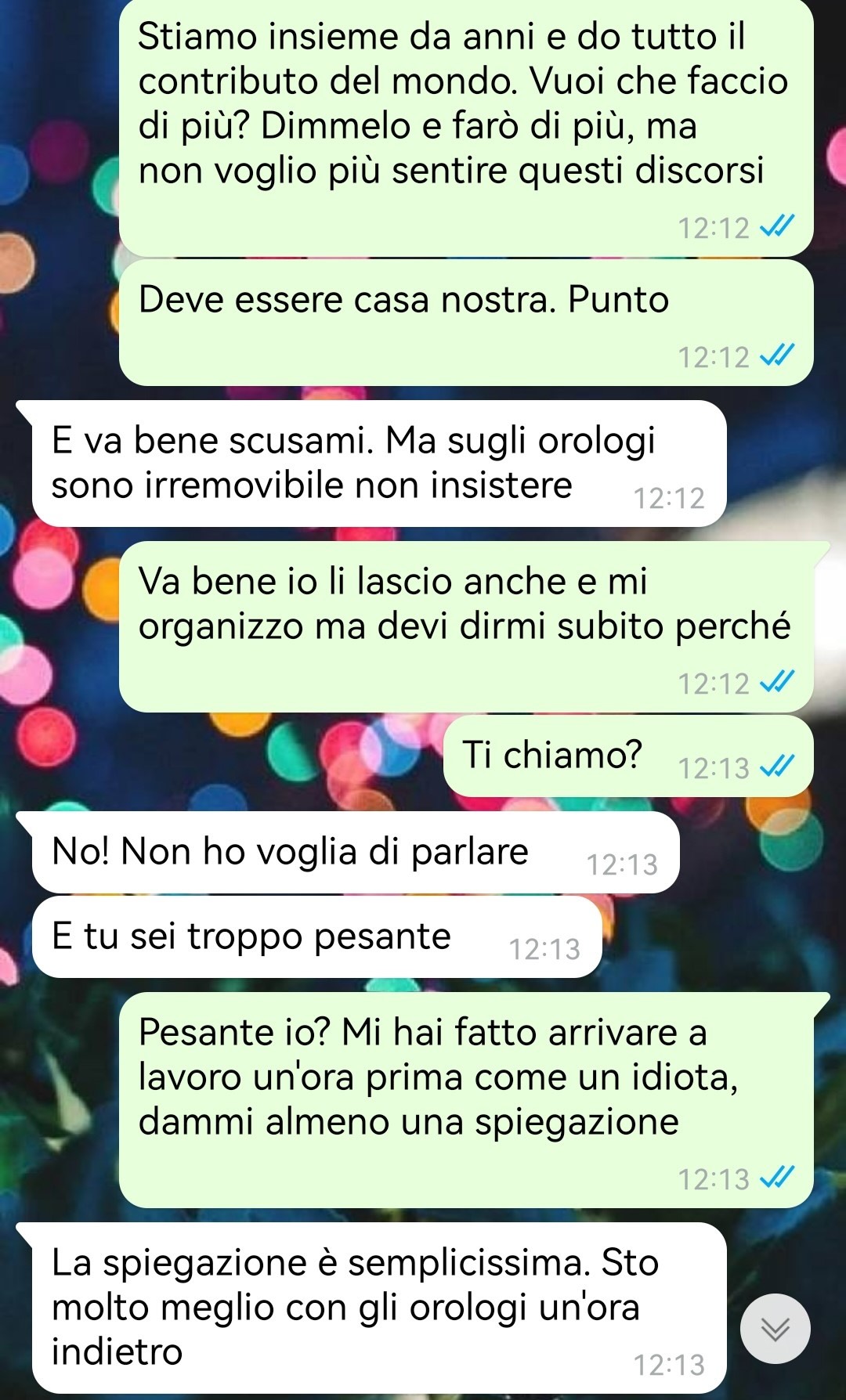 Quello che secondo lui rendeva la faccenda quasi sconvolgente non era solo il cambio di orario, inevitabile e fuori dal controllo di ciascuno, ma il comportamento sorprendente della sua compagna: due giorni dopo Pasqua, infatti, lo ha trovato a lavoro con un’ora di anticipo… perché lei aveva manualmente spostato indietro tutti gli orologi di casa, come se quell’ora legale non esistesse.