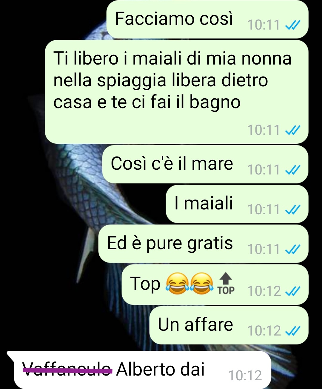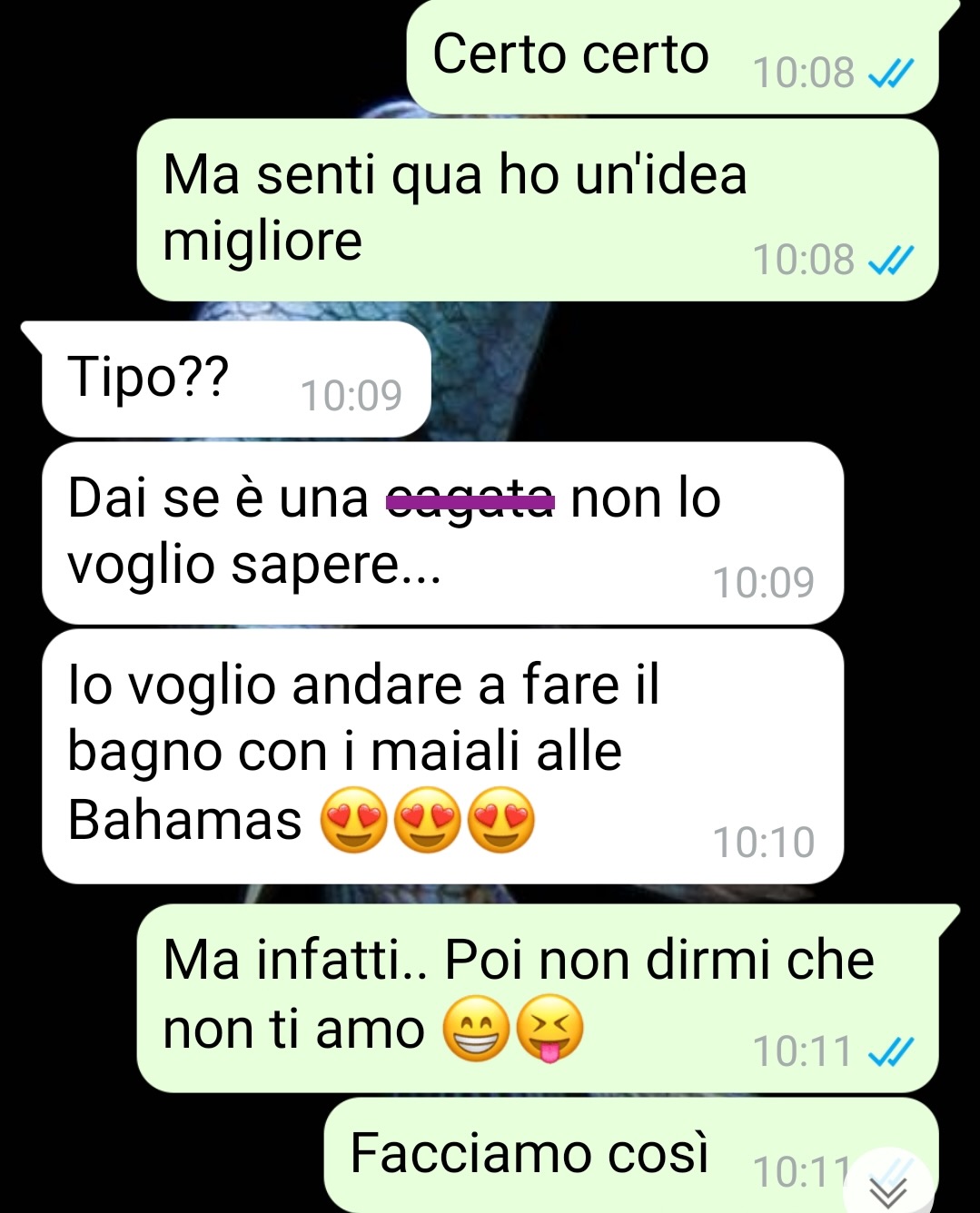 Alberto non ha intenzione di assecondare questa richiesta, e ha deciso di condividere lo scambio per mostrare quanto a volte ci si trovi davanti a idee che sembrano arrivate da un altro pianeta, anche all’interno di una coppia affiatata.