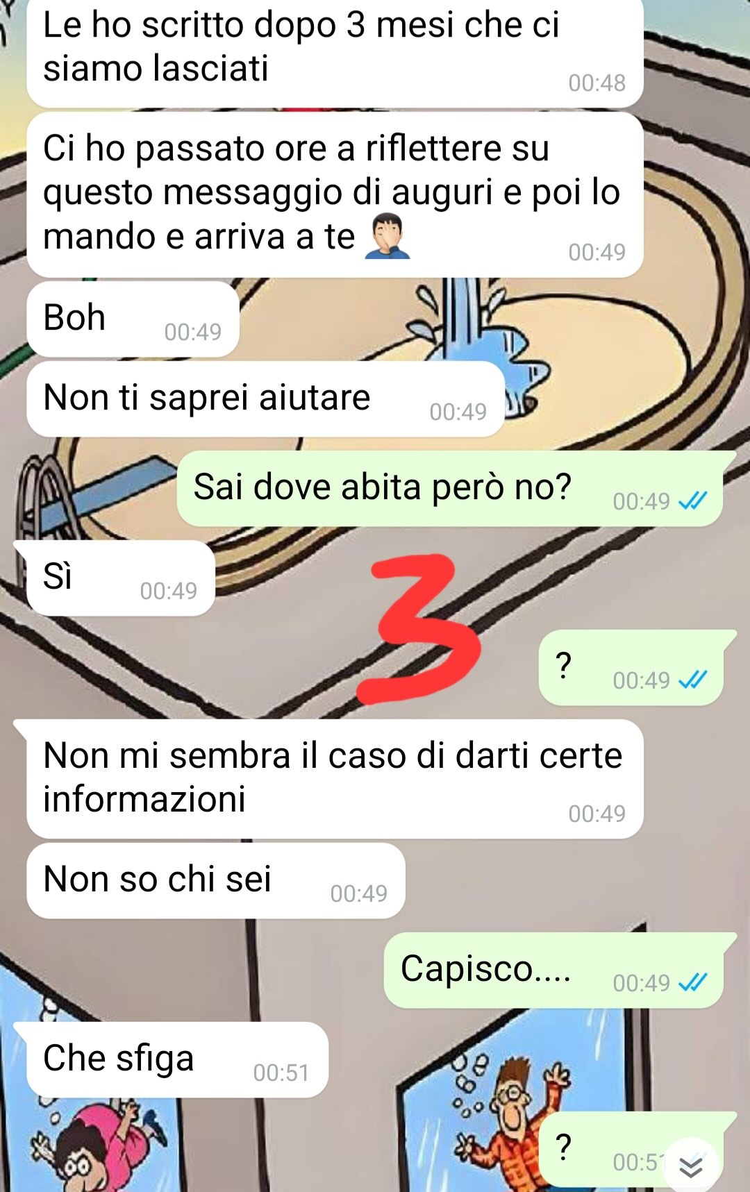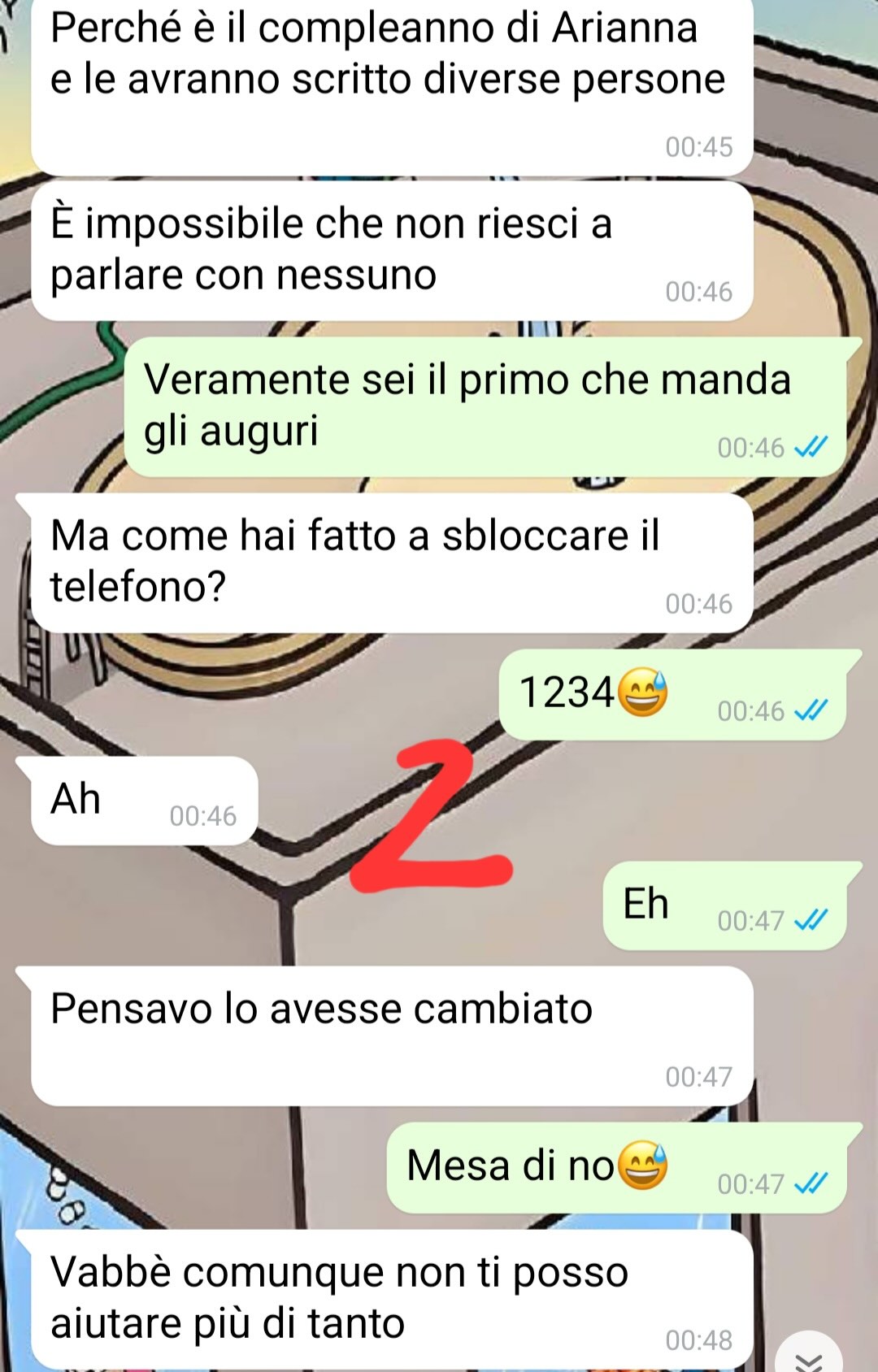 Mi chiamo Arianna e la conversazione che vi mando resterà un pezzo di storia della mia vita per tanto tempo. La cosa strana è che la conversazione è avvenuta sul mio telefono ma non sono stata io a scrivere. Vi spiego: la sera prima del mio compleanno, in attesa della mezzanotte, ero con un gruppo di amici in un parco panoramico di Roma. Essendo io una persona parecchio distratta, andando via ho dimenticato il telefono sulla panchina su cui ero seduta…poi sono andata con gli amici in un pub e mi sono accorta di aver perso il telefono almeno un’ora dopo. Mentre io festeggiavo con i miei amici, un ragazzo trovava il mio telefono sulla panchina: si chiama Federico e a lui devo un graaaande favore…Quella sera infatti, parenti esclusi, c’era una sola persona per me davvero importante che non stava festeggiando insieme a me il compleanno ed era il mio ex, Pablo.Quando lui mi ha mandato gli auguri, Federico gli ha risposto dal mio telefono e da lì è nata una conversazione assurda…