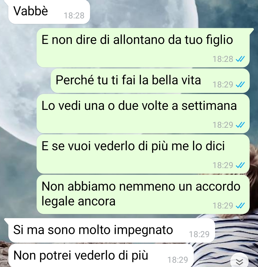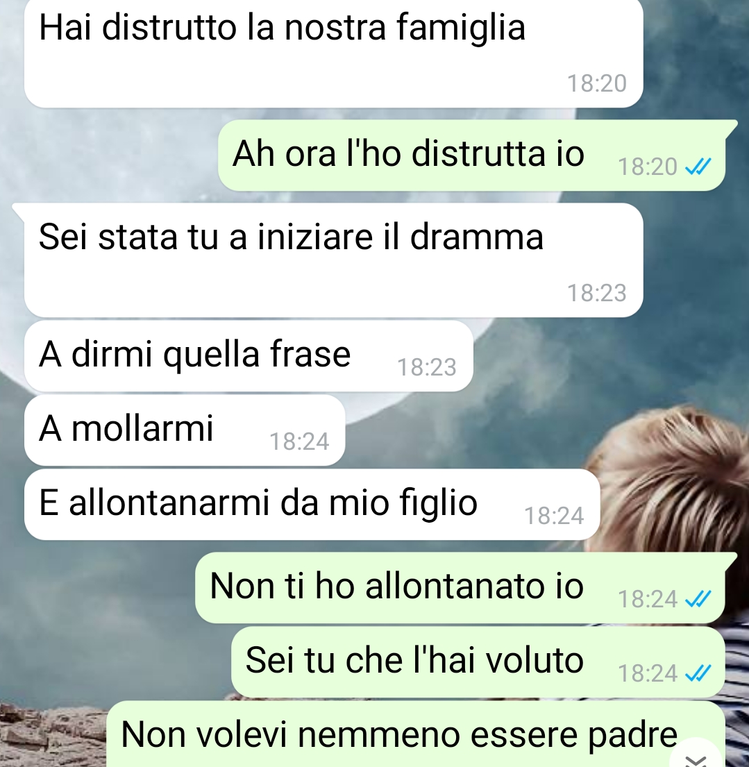 Salve, mi chiamo Federica e sono una madre che si ritrova a vivere una situazione difficile. Ho un figlio di 6 anni, è una cosa meravigliosa e cerco di crescerlo nel migliore dei modi, ma arriva prontamente quel non so cosa del mio ex che me lo rovina. Io vi giuro che provo in ogni modo a essere conciliante. Avevo genitori divorziati che passavano tutto il tempo a litigare o a schifarsi l’uno con l’altra e riversavano questa cosa su di me, mio padre mi diceva tante cattiverie su mia madre e non ho mai voluto che questa cosa potesse succedere ed essere negativa per mio figlio. Ovviamente è più facile a dirsi che a farsi. Infatti il mio ex era una persona incredibilmente e tremendamente falsa, cattiva e infedele. Soprattutto infedele. Io ho 30 anni, ho avuto mio figlio molto giovane e lui era addirittura più giovane di me di due anni. E sin da quando è nato fino a qualche mese fa che ci siamo lasciati, si è sempre lamentato che non voleva essere padre, però non si allontanava comunque da noi. Una situazione terribile e psicologicamente deleteria, finché appunto non ho deciso di mollarlo. Ora si presenta un nuovo problema. Uno economico, ma non il fatto che lui non ci dia alimenti perché non è tenuto a farlo e non ho mai voluto nulla da lui, quanto il fatto che ha deciso di fare una cosa terribile a mio figlio pensando di educarlo.