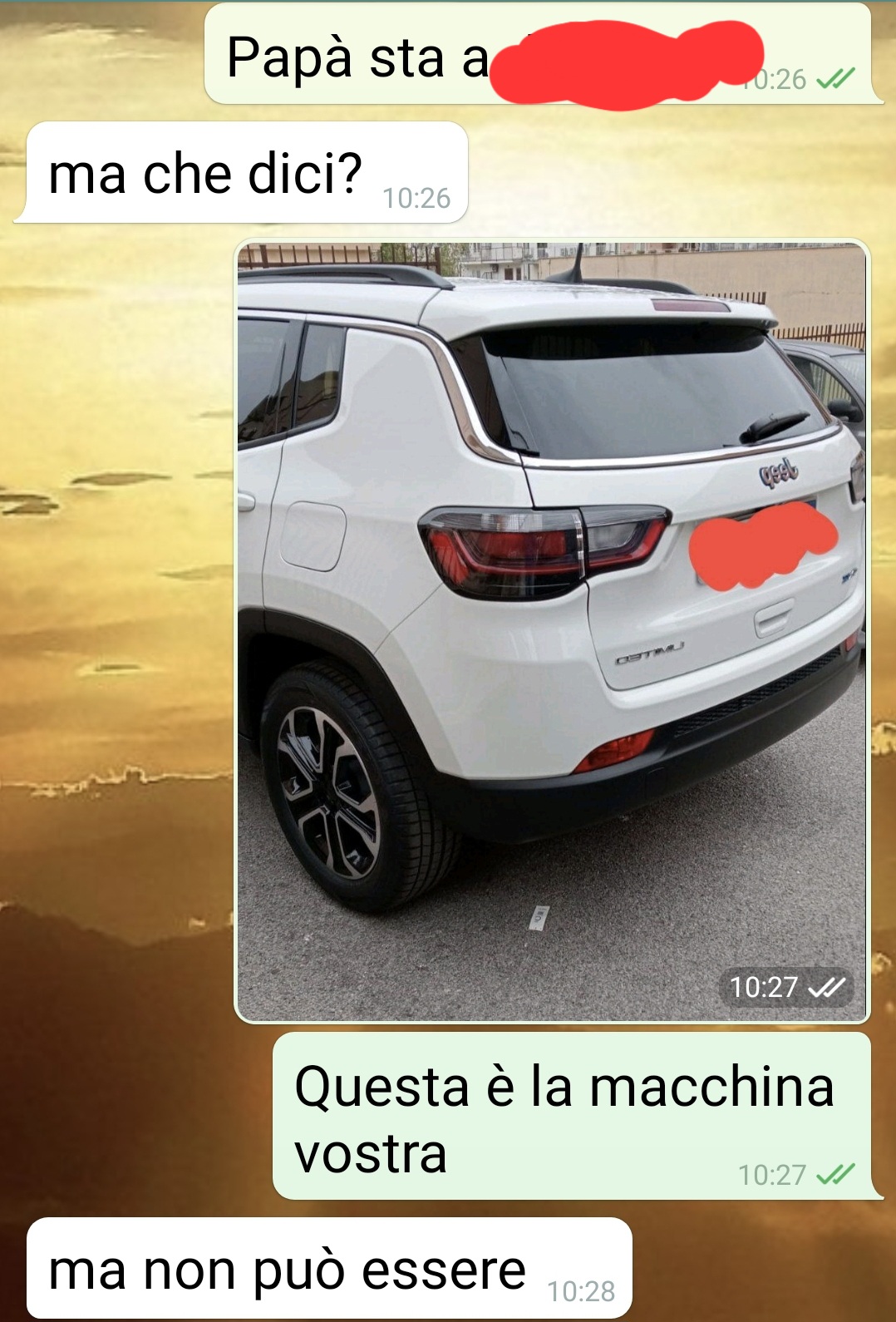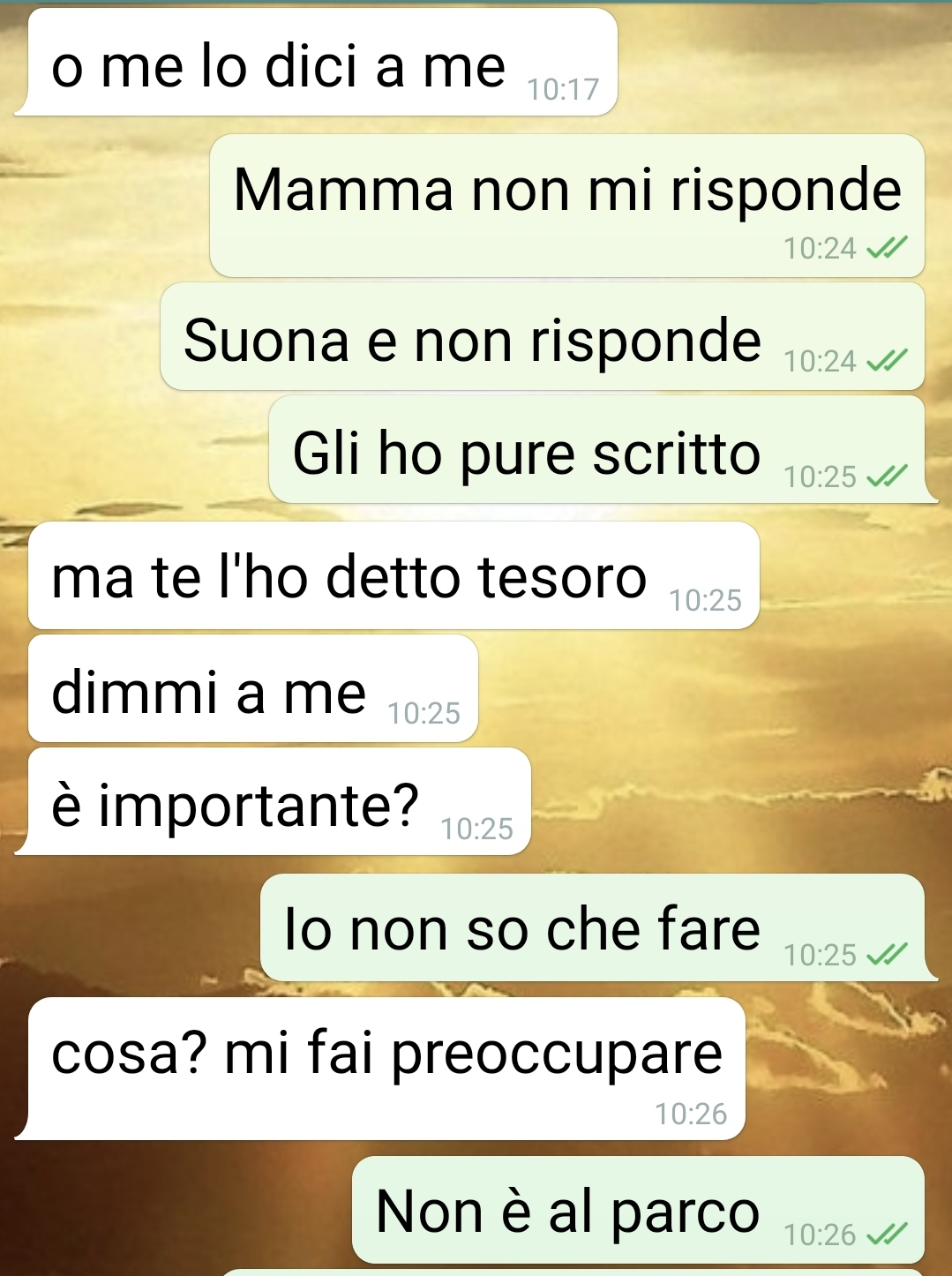 sono Nadia e vi mando questa chat per sapere che ne pensate, dove ho sbagliato (perché sicuramente qualcosa ho sbagliato) e come dovrei comportarmi adesso. Io alla fine ero solo preoccupata per il chihuawa o come cavolo si scrive di mia madre. Infatti stavo andando a casa di una mia collega di università e vedo Patato dentro quella che sembra la macchina dei miei, in un parcheggio in città. La macchina è sotto il sole e con i finestrini chiusi. Scrivo quindi a mia madre pensando che siano lì da qualche parte, ma invece comincia il casino più totale. Mia madre è a casa, mio padre non risponde al cellulare e dovrebbe essere al parco a correre da tutt’altra parte della città. Forse dovevo gestirla meglio sta situazione torbida. Almeno Patato adesso sta bene, ma che devo fare con quell’ultimo screen? Dirlo a mamma? Dimenticarlo? Affrontare papà? Che dilemmi, mi rodono dentro.