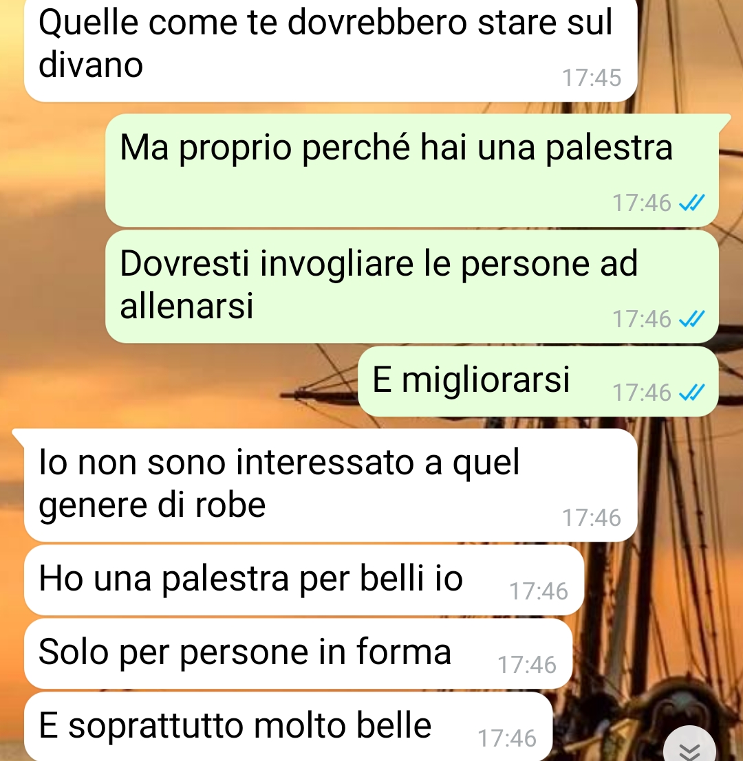 L’amica aveva spiegato ad Anna che questa palestra funziona in modo particolare: non accetta richieste di informazioni dirette né visite spontanee, mantenendo sempre la porta chiusa e permettendo l’accesso solo tramite tessera magnetica. Per ottenere questa tessera è necessario sostenere una sorta di colloquio preliminare con Massimo attraverso WhatsApp, modalità che aveva spinto la nostra lettrice a contattarlo direttamente tramite l’applicazione di messaggistica.