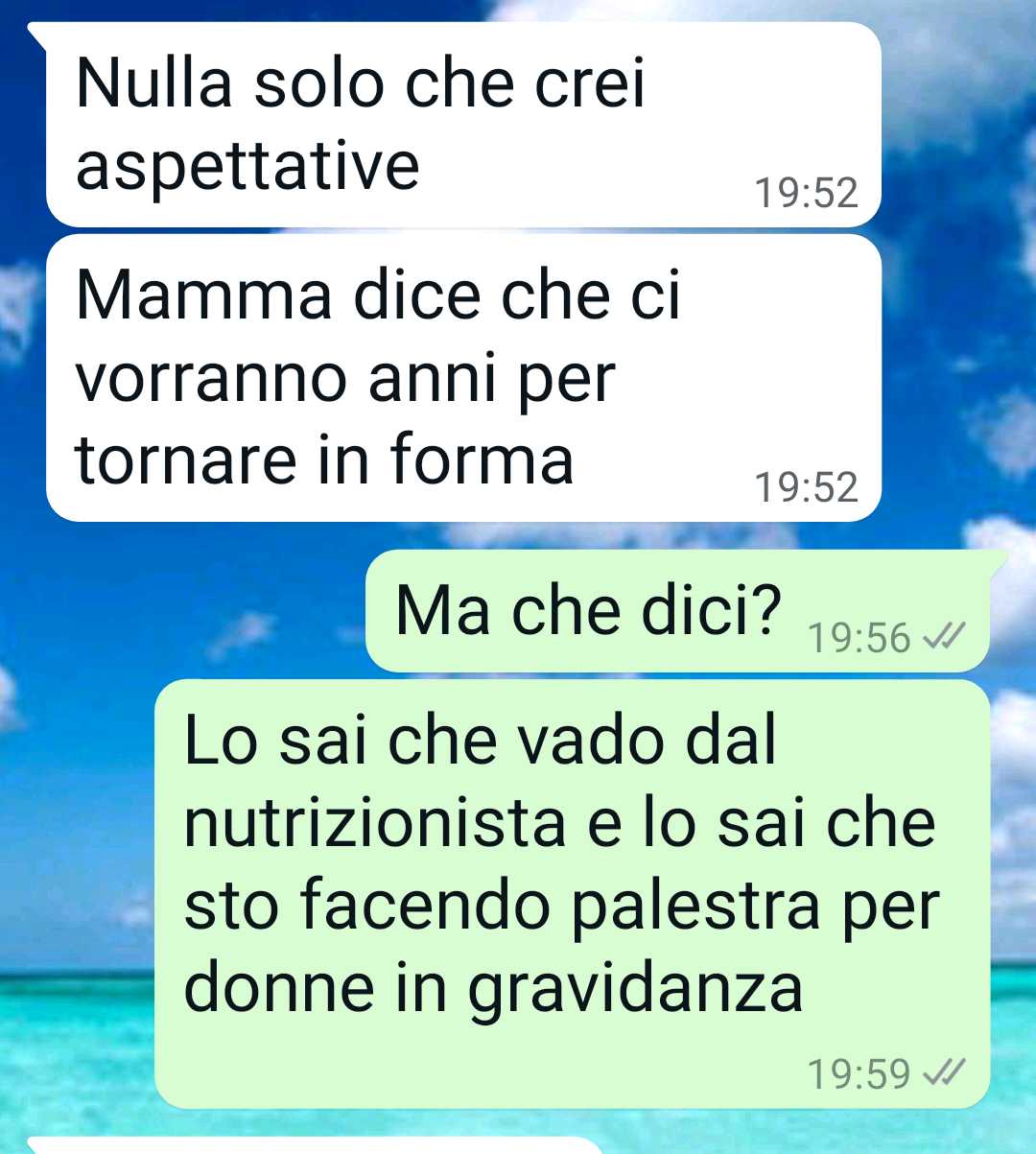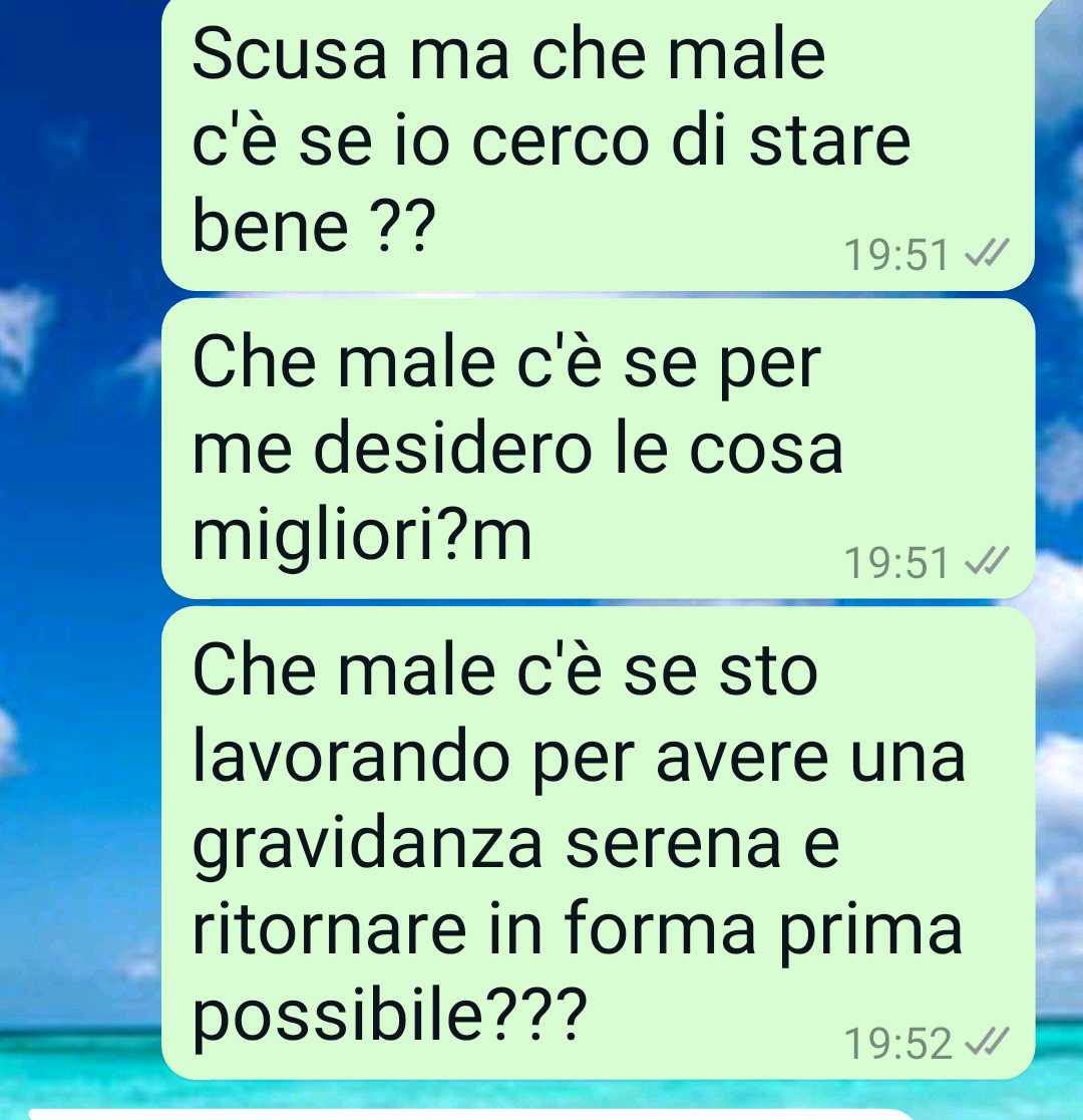 La nostra follower racconta di essere in salute, di condurre uno stile di vita sano e di avere una forte determinazione nel voler stare bene. Le parole del marito l’hanno fatta soffrire molto, fino alle lacrime, perché non sopporta gli stereotipi legati all’età. Si sente bene con sé stessa, è felice e vive questo periodo con entusiasmo.