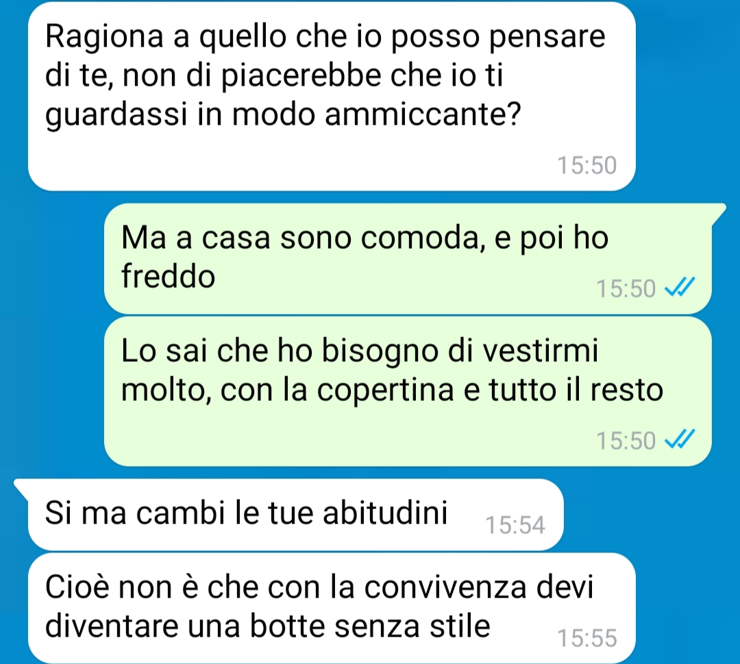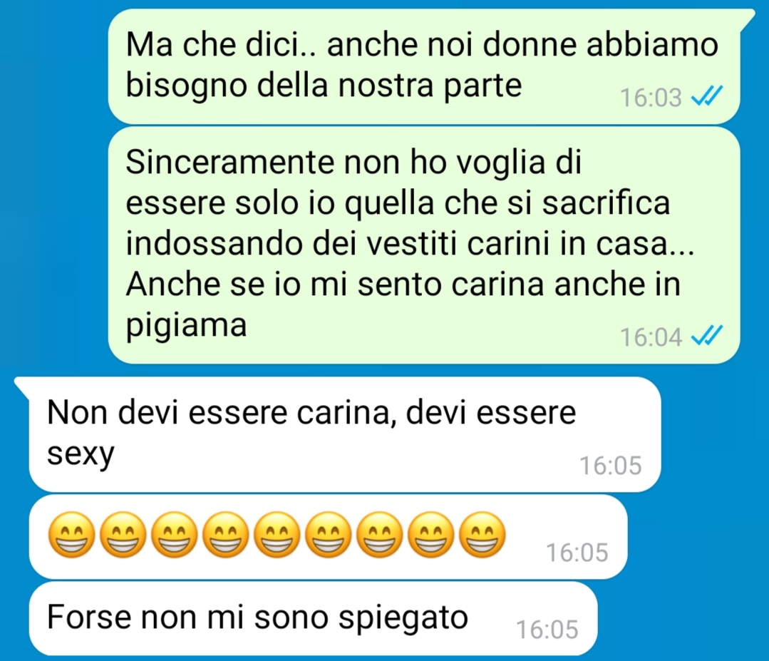Il problema è che Cristian non apprezza affatto questo stile casalingo e non vuole vederla vestita in quel modo. Questo sta creando una situazione di incertezza per Manuela, perché non vuole perderlo, ma al tempo stesso non vuole rinunciare alla sua comodità quando è in casa.