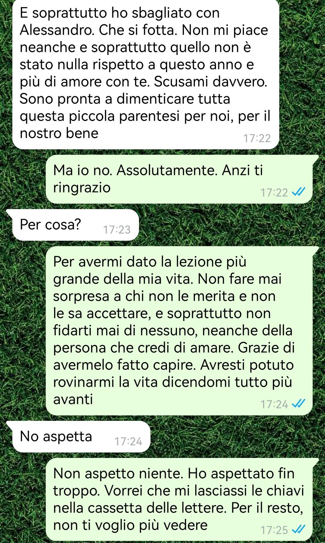 Purtroppo, il nostro amico racconta che le cose non sono andate come sperato. Proprio quando si aspettava una risposta entusiasta da parte di Marianna, ha ricevuto sì un messaggio, ma pieno di rabbia e di parole che non si sarebbe mai aspettato di leggere in un momento che per lui avrebbe dovuto essere di gioia. La nostra fan conclude spiegando che quel messaggio è stato solo l’inizio della fine della loro storia, lasciandolo con un senso di amarezza per aver trasformato un gesto pensato per esprimere affetto in un momento che ha segnato la rottura definitiva della relazione.