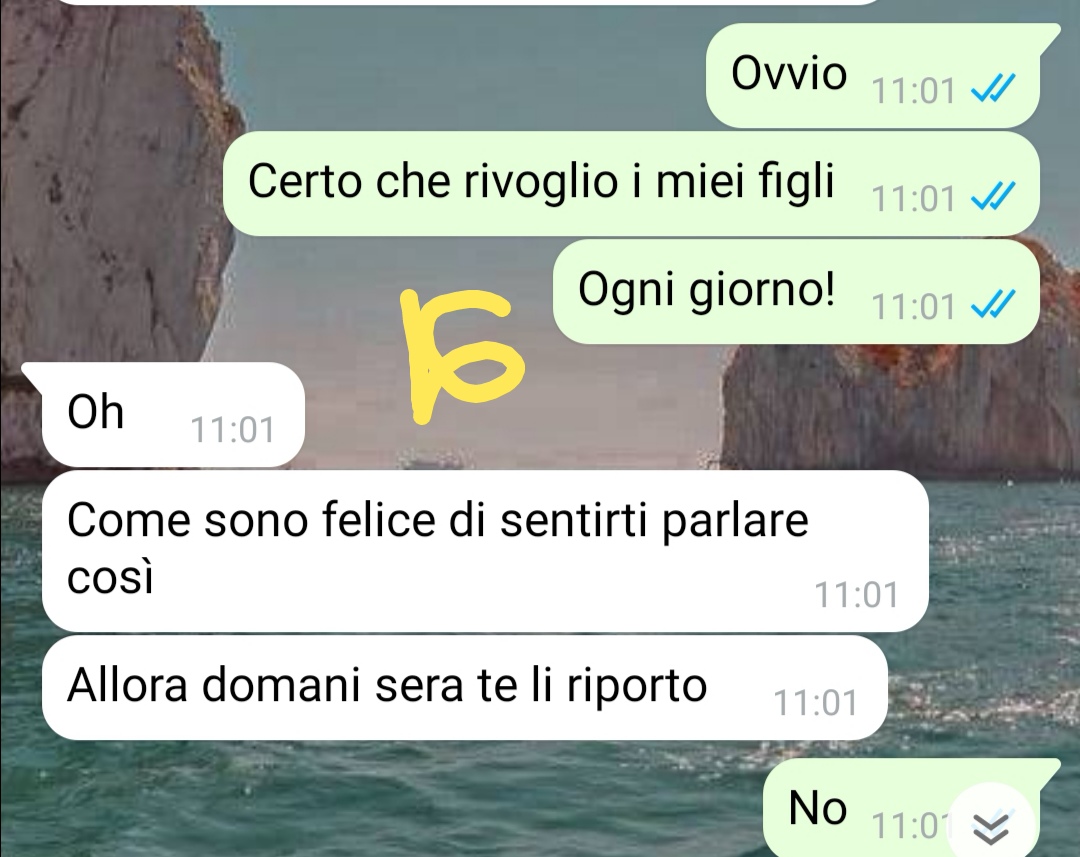 La nostra amica sottolinea che in Italia l’affido esclusivo non viene concesso con facilità e che, salvo situazioni particolari, si tende a privilegiare soluzioni condivise o comunque a favore della madre. Nel suo caso, afferma con convinzione, non c’erano circostanze anomale che giustificassero un provvedimento così drastico. Eppure, racconta, Marco sarebbe riuscito nel suo intento.