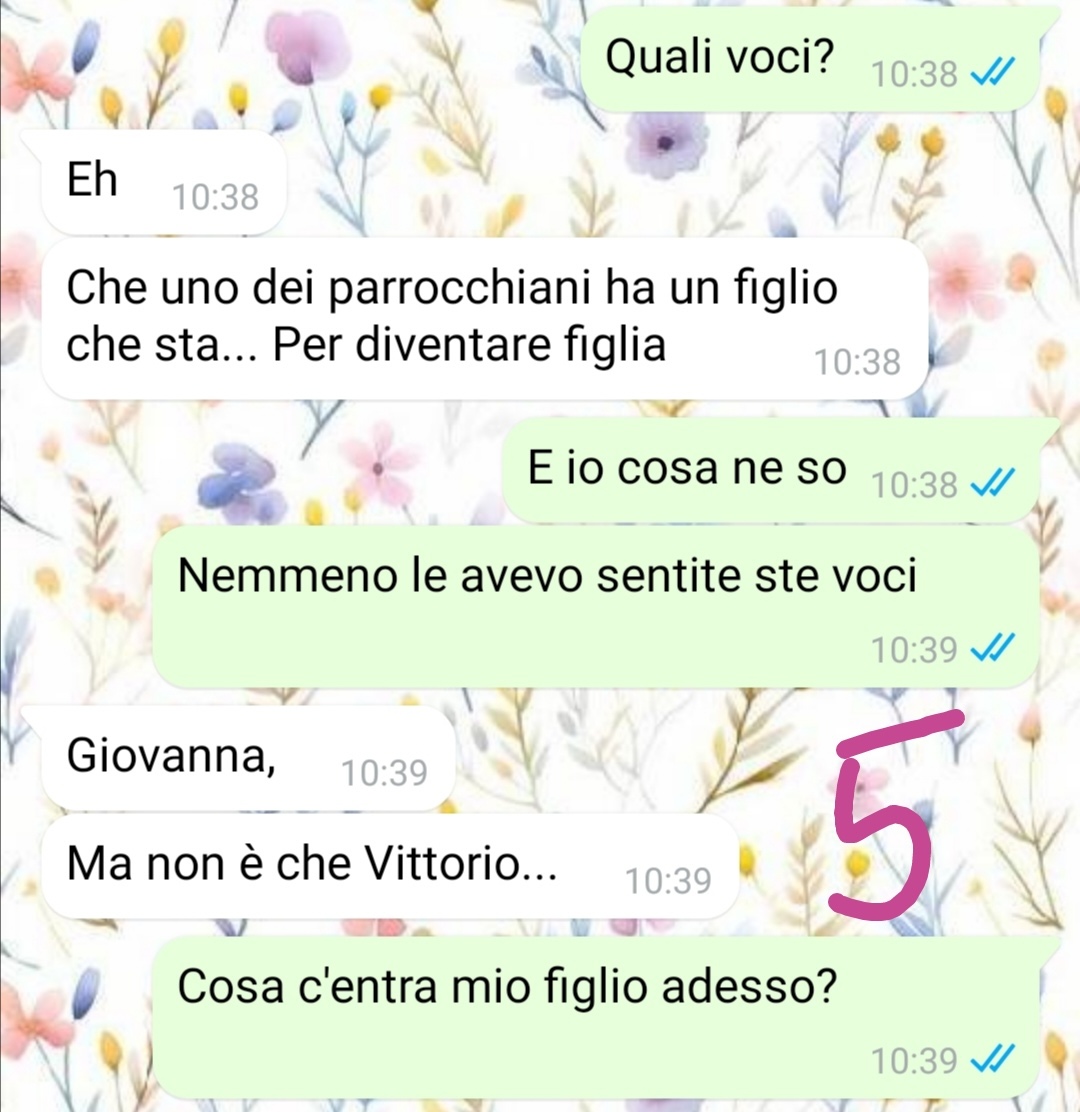 La nostra fan, Giovanna, si presenta come mamma e moglie, impegnata da sempre nelle attività della parrocchia del proprio paese. Non avendo mai svolto un lavoro retribuito, ha scelto di dedicarsi completamente al volontariato. Partecipa al coro, svolge il ruolo di catechista e fa parte di un comitato che si occupa di organizzare eventi e iniziative a scopo benefico per la comunità locale.