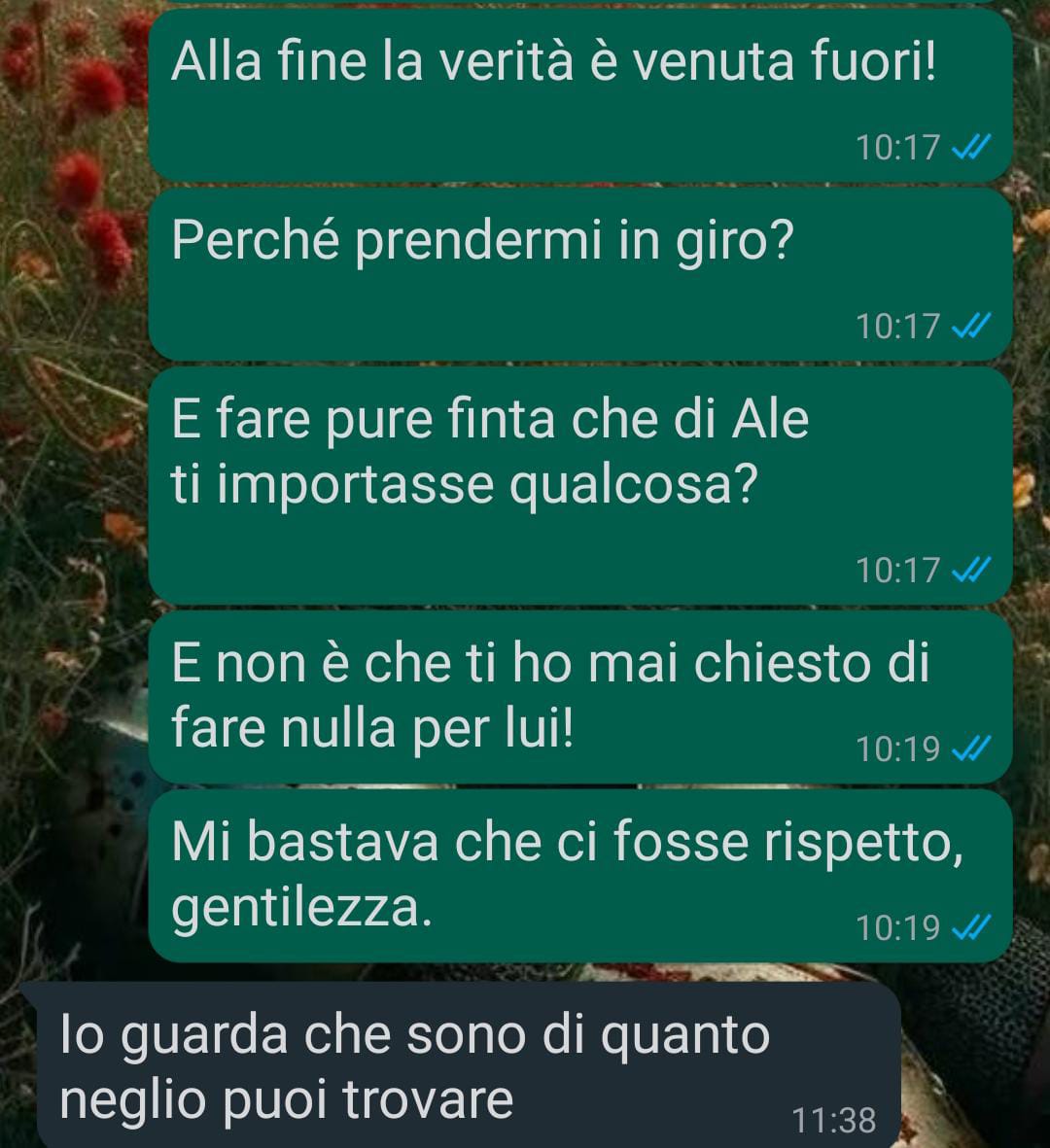 Con il tempo la follower e Alessandro hanno trovato un nuovo equilibrio, supportati da persone preziose che li hanno accompagnati nel percorso di guarigione. Pur riconoscendo che il dolore non scompare mai completamente, la nostra amica ha imparato che la vita continua e bisogna impegnarsi per ritrovare la felicità. Ha ottenuto soddisfazioni lavorative e ha provato gioia nel vedere il figlio crescere bene nonostante le difficoltà. Recentemente ha deciso di riaprirsi all’amore e ha conosciuto Gianni, che inizialmente l’ha corteggiata con grande impegno prima che lei accettasse di frequentarlo. I primi quattro mesi sono stati splendidi, ma dopo quasi un anno di relazione qualcosa è cambiato e la fan ha compreso la vera natura di quest’uomo. Ora si sente demoralizzata, anche perché per lei non è facile lasciarsi andare dal punto di vista relazionale, e si chiede se ci sia ancora speranza di trovare l’amore.