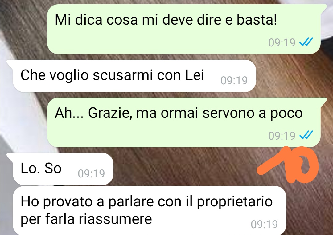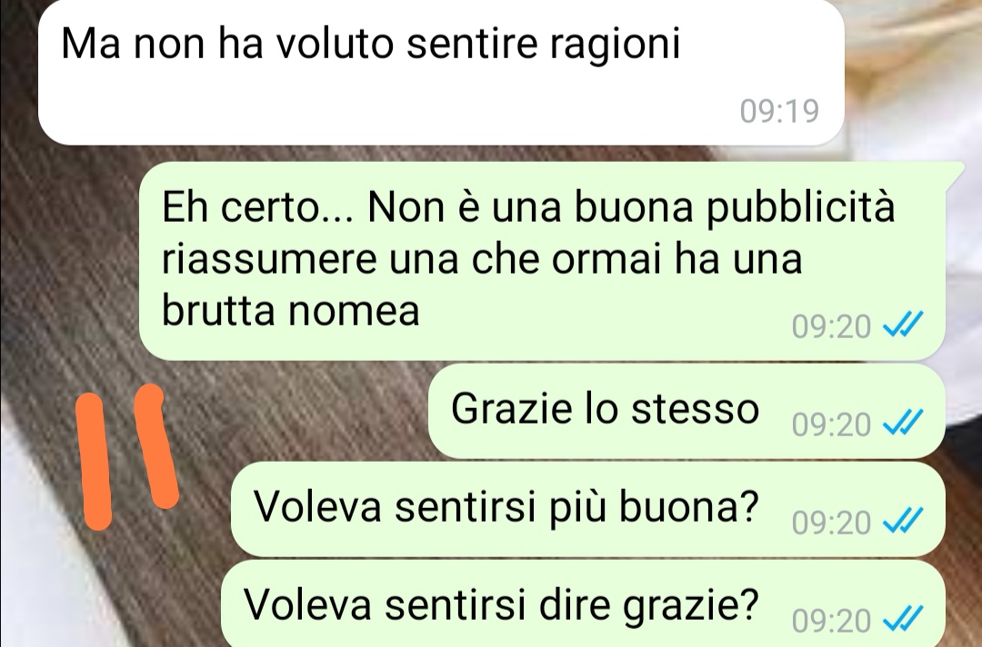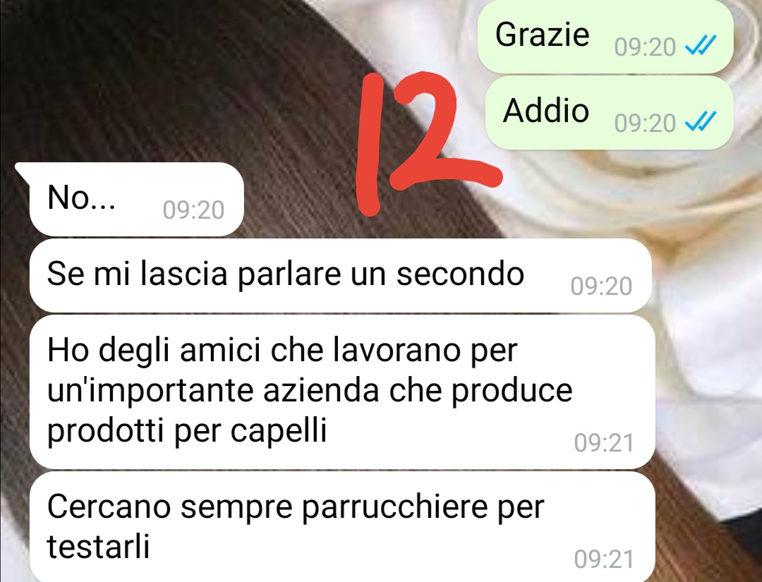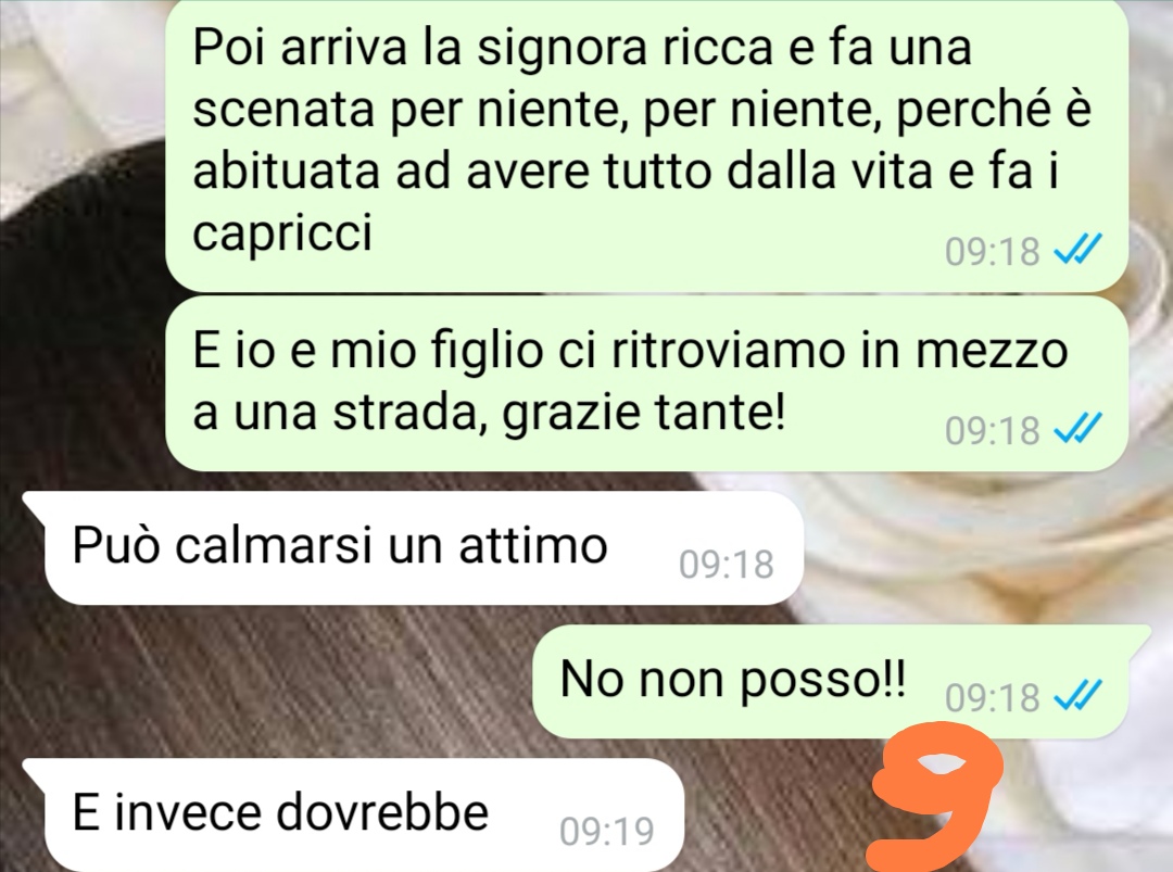 Rossella racconta che, un giorno, ha commesso un errore con la tinta di una cliente abituale. Non si trattava di un danno permanente, ma comunque di una svista. Ammette con sincerità di aver sbagliato, precisando che in quel periodo era molto provata dalla stanchezza: la notte precedente non aveva dormito a causa dei problemi di salute del figlio piccolo.