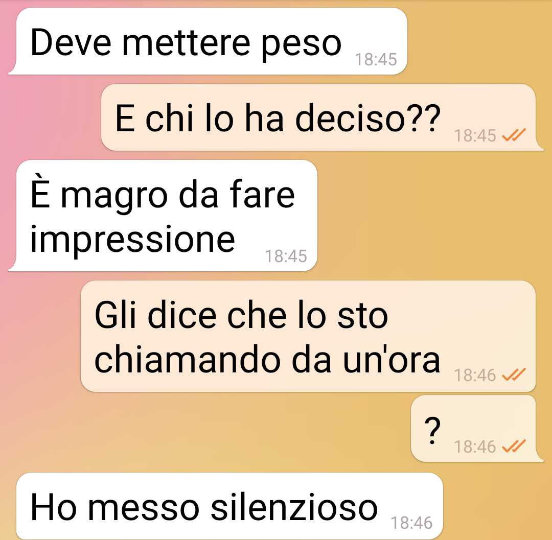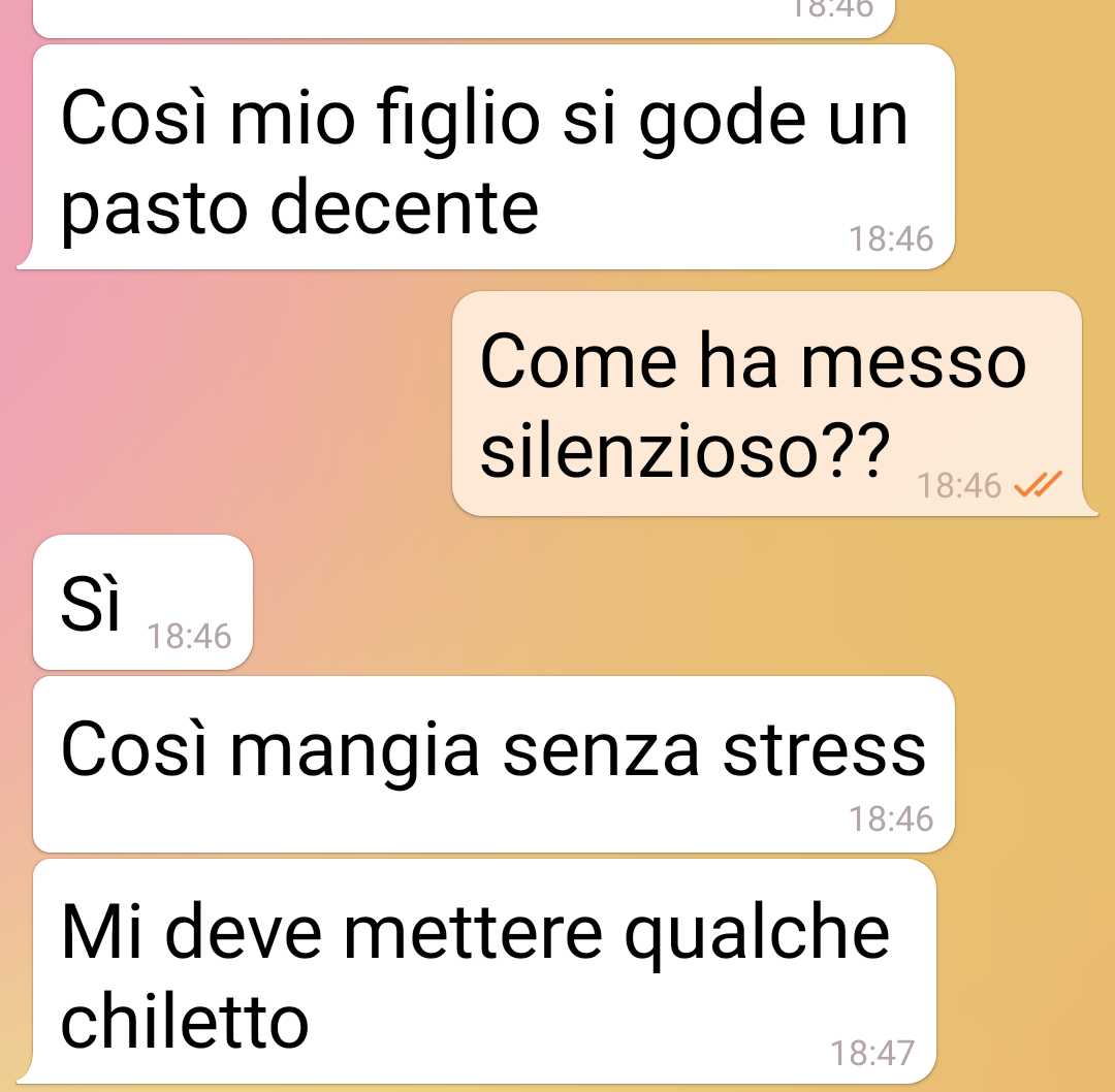 Mia suocera sta ingozzando mio marito. Gli deve fare prendere peso. Ma non ce l’ha solo con lui. Io e mio marito viviamo lontano da mia suocera per fortuna. Lei è una specie di chioccia che vuole sempre proteggere il figlio. Ora si è fissata che è magro e che lo deve fare ingrassare. In realtà è in forma e sta bene, ma lei no, lei deve vedere la panzeAa se non non è contenta. Deve toccarlo e senCre la carne altrimenC pensa che si sia smagrito. Ora mio marito è una persona adulta capace di intendere e di volere e ci penserà lui a dire a sua madre se vuole mangiare o no le sue pietanze di pasta e carne per merendina. Il problema è che la signora (sì le do del lei) non si vuole limitare a suo figlio. Le sue cure sono dilatate e si dilateranno ancora di più non solo verso suo figlio. Io qui sono sboAata. Questa cosa non posso sopportarla. Non sono una persona caKva ma mia suocera anche se vuole fare del bene è capace di Crare fuori il lato più bruAo e caKvo delle persone.