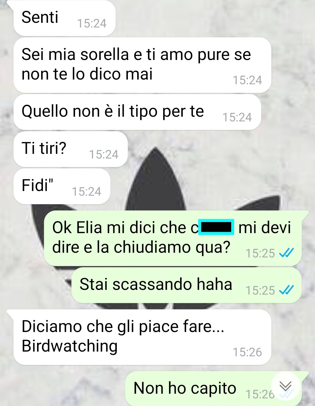 I due fratelli, a detta della nostra follower, hanno caratteri molto diversi e non sono soliti scambiarsi gesti affettuosi in modo esplicito, ma entrambi sanno quanto si vogliono bene. Racconta che, nonostante sia lei la maggiore, è Elia ad assumere spesso il ruolo protettivo, comportandosi come un fratello più grande. Controlla, interviene, fa sentire la sua presenza e, in certe occasioni, diventa persino geloso, specialmente quando si tratta dei ragazzi frequentati da Priscilla.