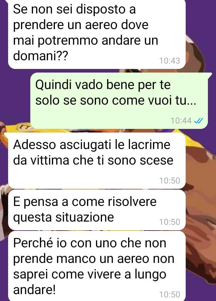 Il suo messaggio rivela un misto di delusione e incertezza, soprattutto perché si era esposto con sincerità e buona volontà. Dopo aver visto cambiare il comportamento della sua compagna in modo così repentino, si sente spiazzato e pieno di dubbi su come andare avanti.