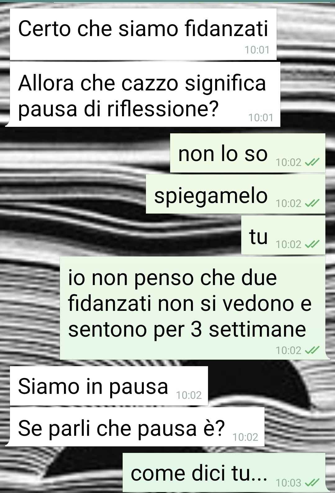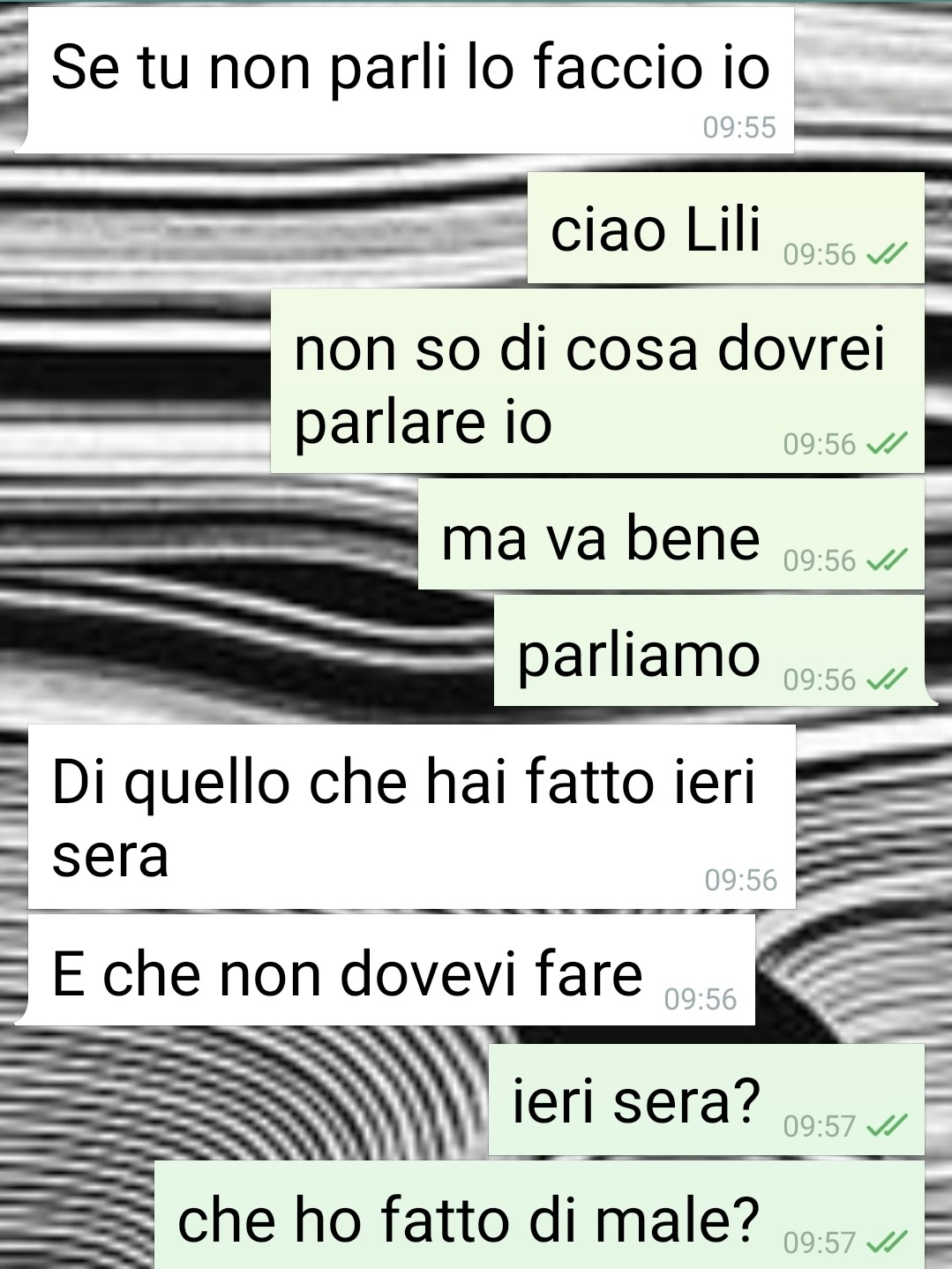 Vi mando questa chat perché vorrei che fosse letta per capire il disagio che io e molte altre persone nella mia situazione dobbiamo vivere ogni giorno. Ho avuto un battibecco con il mio fidanzato in seguito a una mia richiesta di consiglio su come fare le unghie con un motivo a “calici di vino” e la sua reazione è stata a dir poco irritante. All’inizio non ci avevo dato troppo peso, capita spesso che io e lui non andiamo d’accordo su delle cose, ma rileggendo i messaggi questa volta mi sono arrabbiata parecchio, perché trovo le sue parole e le sue richieste davvero inopportune per l’epoca in cui viviamo. Io sono sempre stata così, una persona solare, energica e che ama le feste e passare il tempo con le mie amicizie! Con questa chat non voglio assolutamente dire che io e il mio fidanzato non andiamo d’accordo o che lui sia un bigotto. Ma chiedo a voi, non dovrebbe essere lui il primo a prendere le mie difese davanti agli altri invece che criticarmi fino a questo punto? Dov’è il rispetto verso la mia persona?