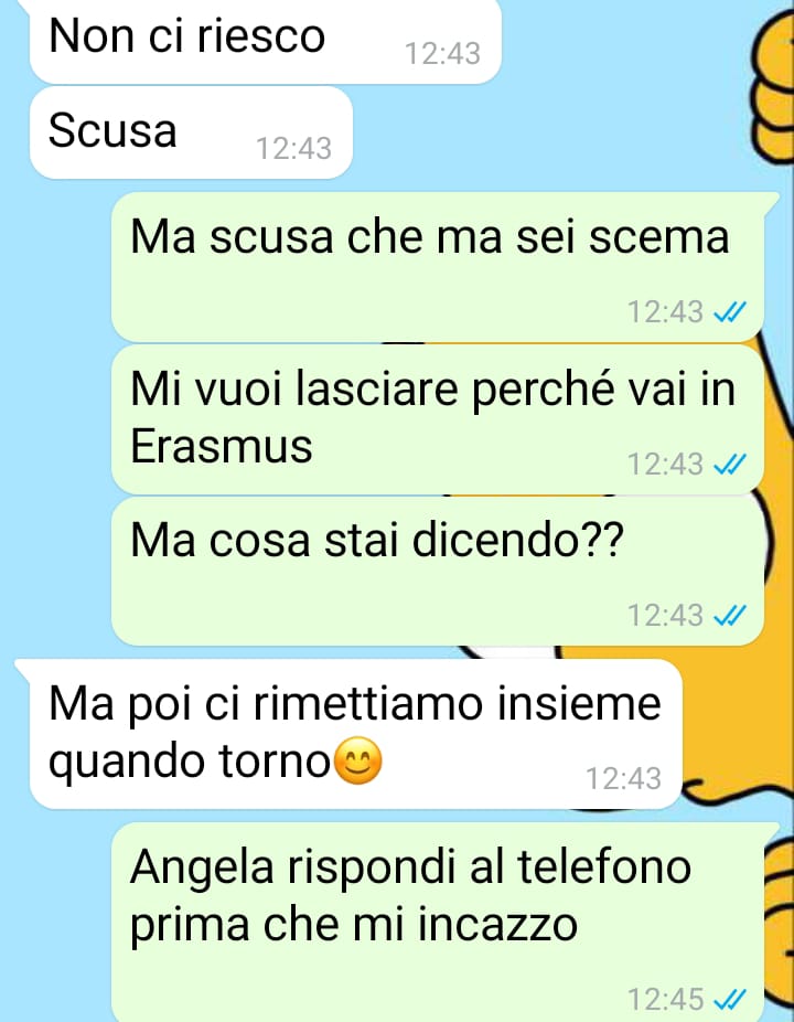 Tra queste, una delle più importanti era senza dubbio la sua ragazza, Angela: 22 anni, minuta e con un aspetto che lui descrive come dolce e intellettuale, forse per via degli occhiali che indossa. Fin dal primo incontro, la ragazza lo aveva colpito per qualcosa di difficile da spiegare a parole.