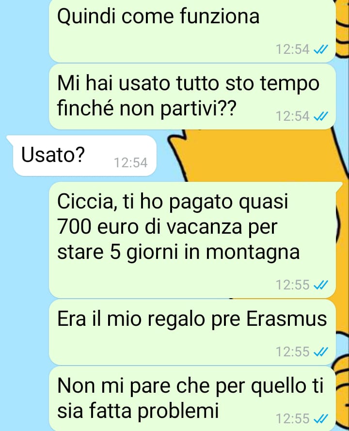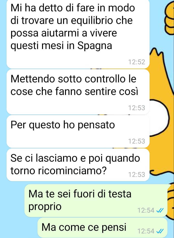 Lui ha attribuito quei segnali a una possibile ansia legata al trasferimento in un paese straniero, ma la verità è emersa poco dopo: Angela gli ha scritto per chiedergli di lasciarsi durante il periodo dell’Erasmus.