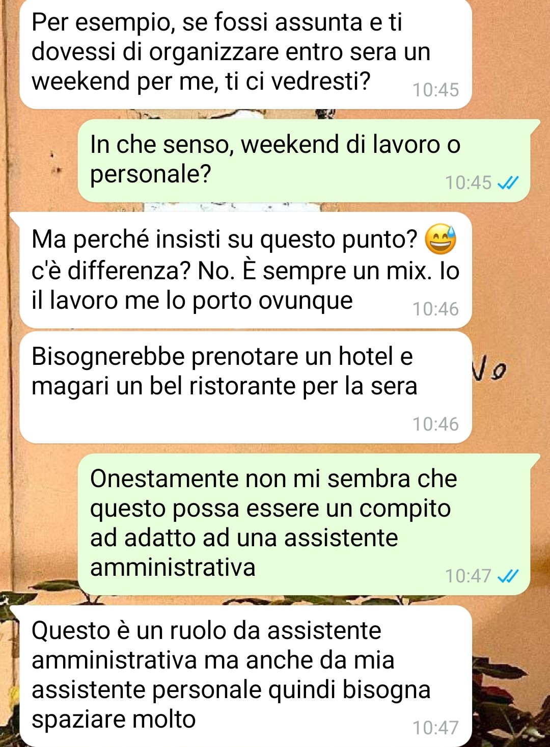 Nel racconto, l’amica sottolinea come non si tratti di evitare la fatica, ma di rifiutare condizioni che vengono vissute come umilianti o lontane da un’idea di professionalità. Il nostro fan evidenzia come, in molti casi, venga chiesto di rinunciare al rispetto personale, e come un eventuale rifiuto porti spesso a essere etichettati come pigri o viziati.