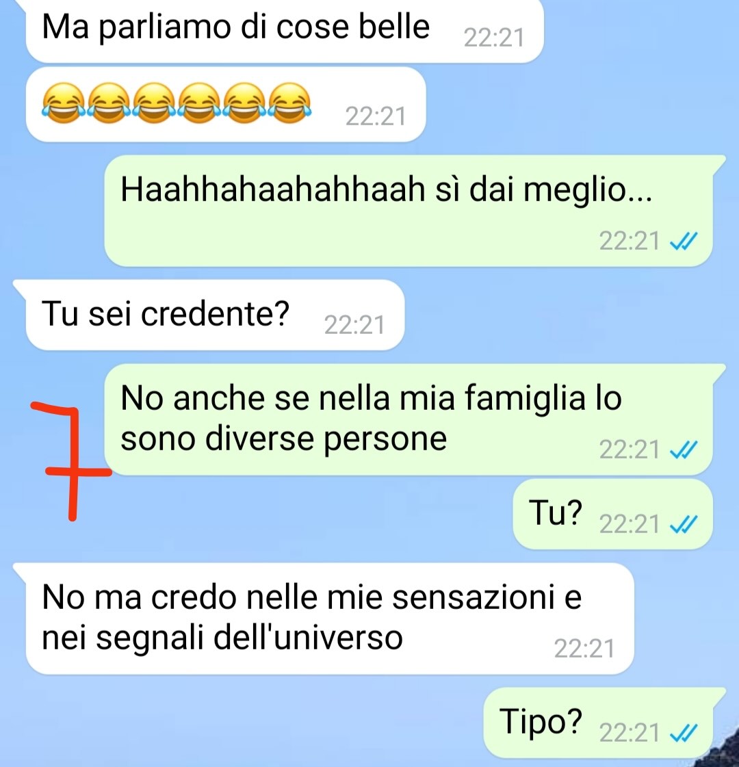 Il nostro fan Andrea ha deciso di condividere una conversazione avuta in giornata, definendola “fresca fresca di stasera”. Racconta di aver conosciuto una ragazza online la mattina stessa, con la quale ha passato l’intera giornata a chattare. Fin dall’inizio, il nostro amico si è sentito coinvolto e incuriosito, tanto da iniziare a pensare che da quella conoscenza potesse nascere qualcosa di interessante.