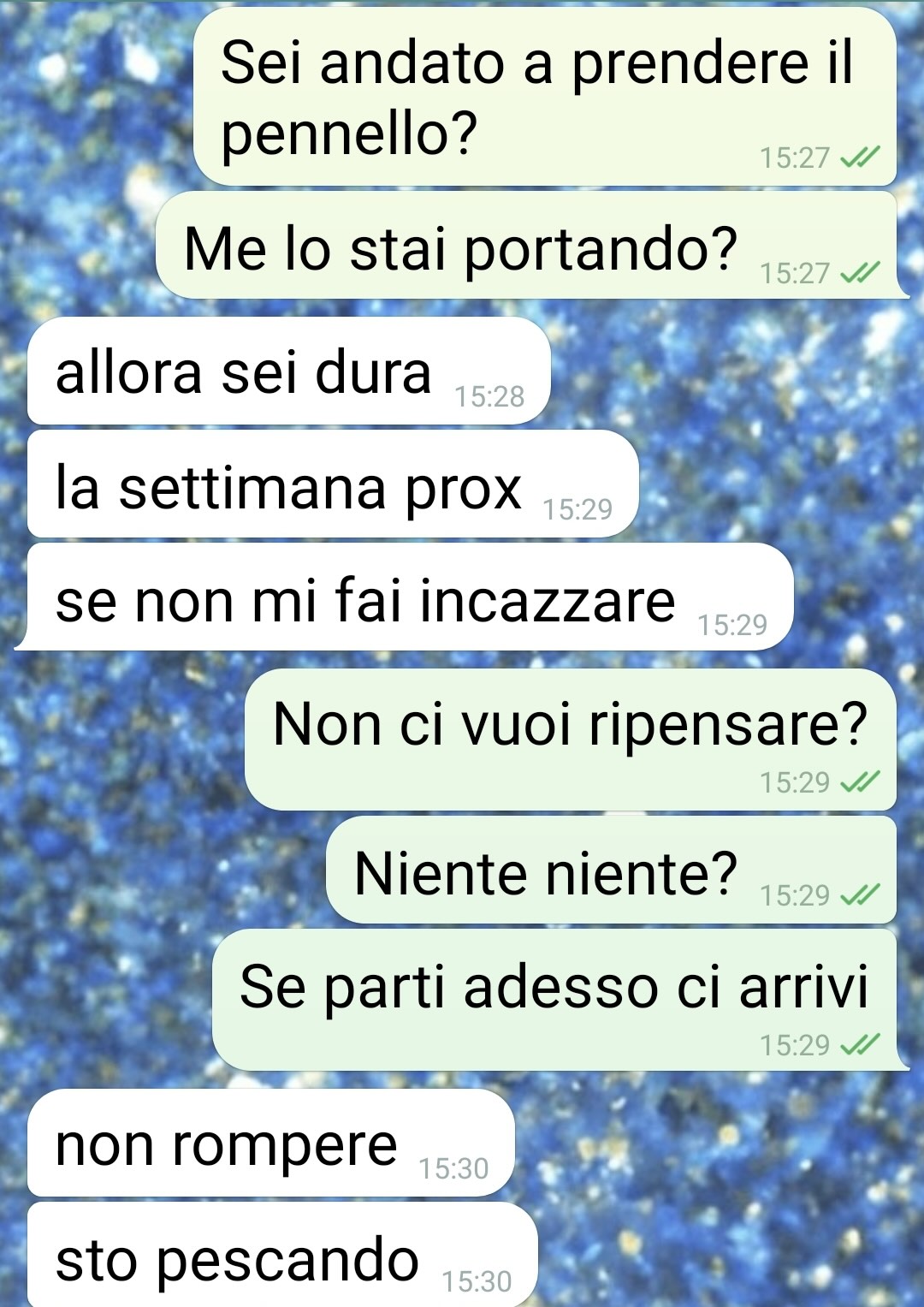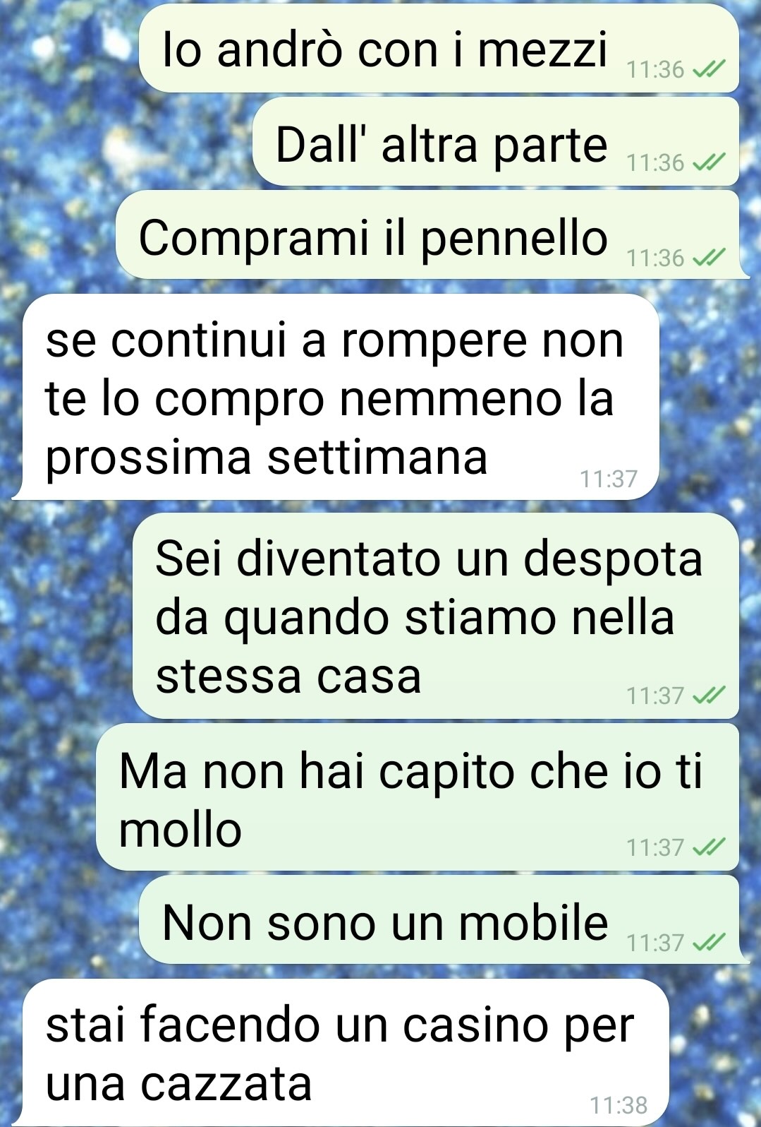 Nonostante le sue raccomandazioni, il pennello è stato rovinato. E, invece di ricevere delle scuse, si è vista umiliata. Nessuna comprensione, nessun gesto riparatore. Solo una nuova dimostrazione di quanto poco venisse ormai rispettata, non solo come compagna, ma anche come persona.