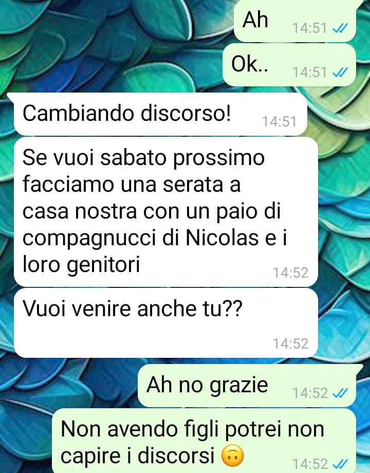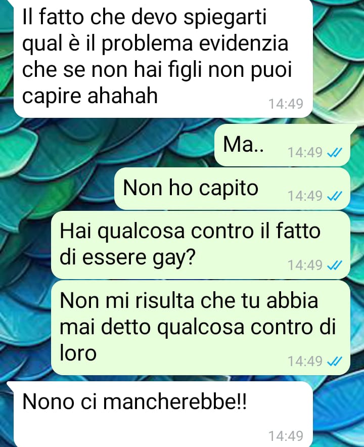 Cercando di esprimere con tatto il proprio punto di vista, la nostra amica ha ricevuto però una risposta che l’ha colpita per la sua durezza e per il tono giudicante. È rimasta particolarmente colpita non solo dall’atteggiamento dell’amica, ma dal fatto che esistano tante persone che condividono simili visioni estremiste e spesso poco razionali, specialmente nel ruolo delicato e importante di genitore. Questo episodio l’ha fatta riflettere su quanto sia difficile, a volte, mantenere rapporti sereni con chi ha un approccio alla vita così distante dal proprio, anche quando c’è affetto e una lunga amicizia di mezzo.