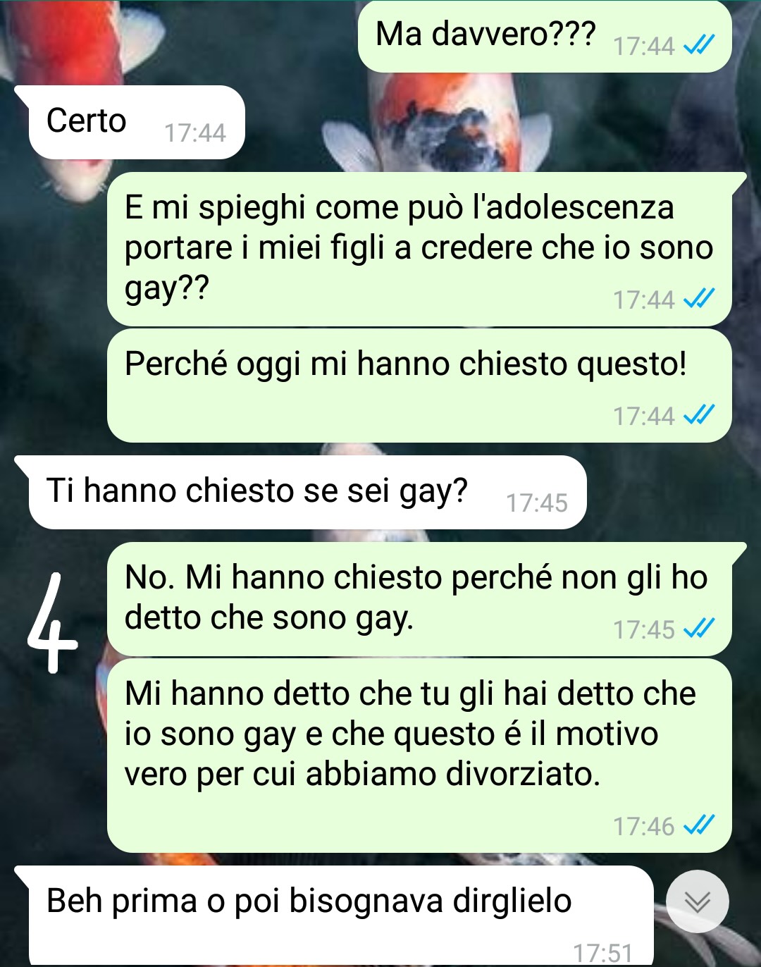 Mi chiamo Alessandro, sono divorziato e sono papà di due ragazzi adolescenti, Alessia e Adriano. Io e la mia ex moglie abbiamo divorziato perché lei era come dire.. una donna molto allegra.. insomma mi tradiva allegramente con chiunque capitasse, approfittando del fatto che io viaggiavo molto per lavoro. Io l’ho scoperta e la prima volta l’ho pure perdonata (che idiota sono stato!!): lei naturalmente ha promesso che non lo avrebbe più fatto e tutte quelle storie che i traditori seriali (donne o uomini non importa) raccontano e poi, come nulla fosse, ha ripreso le sue attività extra matrimoniali. Io ho certato che farla ragionare per il bene della famiglia, all’epoca i nostri figli erano piccoli, ma quando ho capito che non era possibile convincerla a comportarsi decentemente l’ho lasciata. Ci siamo separati. Dopo sei anni di discussioni tra avvocati e tribunale finalmente abbiamo divorziato legalmente: questo è successo due anni fa. Quando ho lasciato mia moglie ai nostri figli non abbiamo detto il vero motivo della separazione ma semplicemente che non andavamo più d’accordo: in parte è vero però è solo una parte della verità.. io mi sono rifiutato di mentire ai miei figli, ma non potevo neanche dire a quelli che all’epoca erano solo dei bambini la cruda verità, ossia che la loro madre è una poco di buono. Ma adesso sono passati in tutto otto anni: i ragazzi sono cresciuti e alcuni giorni fa mi hanno fatto una domanda…