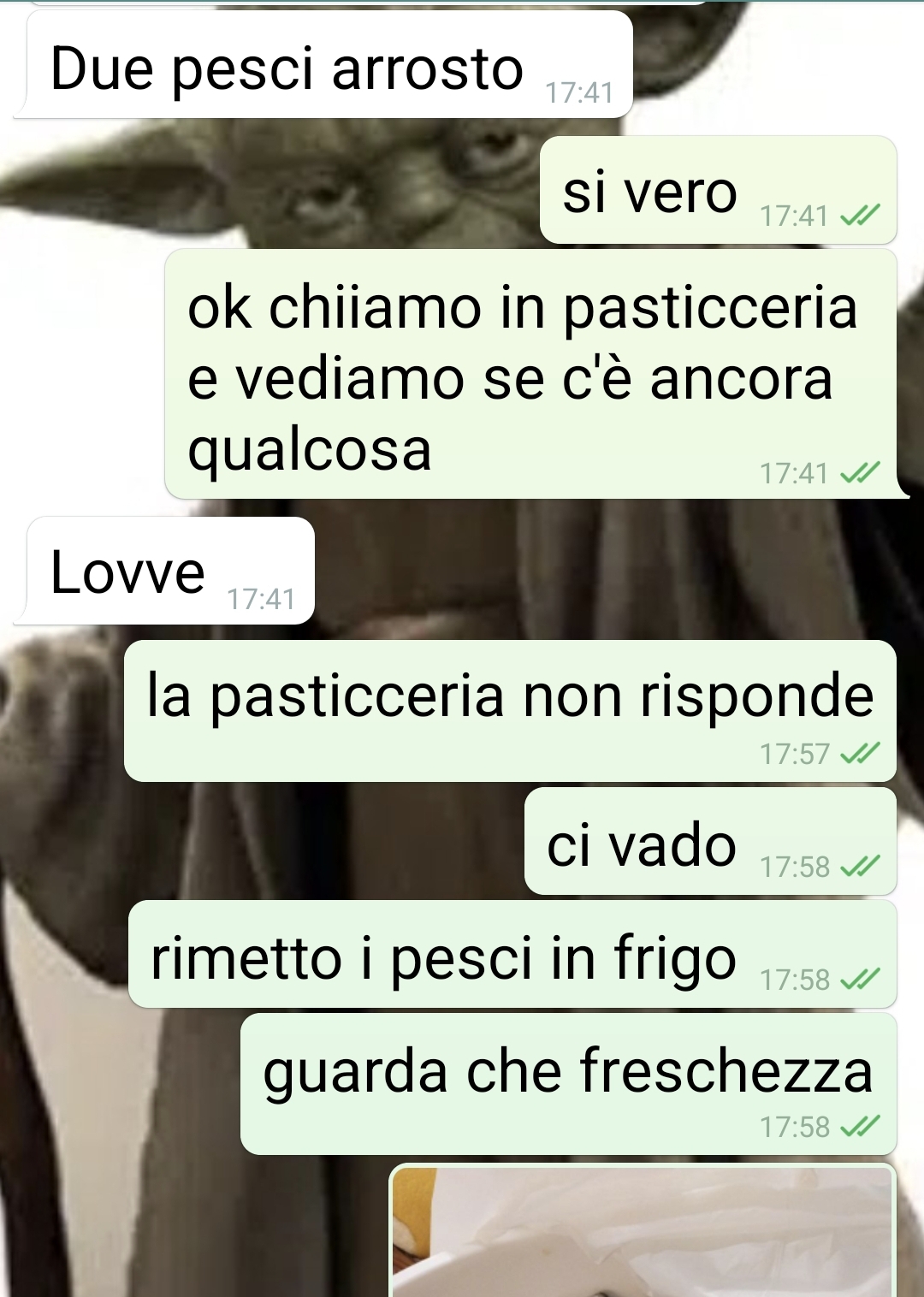 Ho litigato con la mia fidanzata perché a suo dire volevo rifilare “pesce di serie B” ai suoi genitori. Ciao pagina di Commenti Memorabili, sono Luciano e questa è la storia di come una semplice cenetta è diventata un disastro. Sono fidanzato con Matilde e da pochissimo ho conosciuto i suoi. Parlando del più e del meno mi sono ritrovato a invitarli per un barbecue (avendolo in terrazza) di pesce, che quello che sarebbe mio suocero non mangiava un bello sgombro sulla carbonella da una vita. Ordino tutto dal pescivendolo di fiducia, preparo con largo anticipo e un paio d’ore prima della cena Matilde crea un problema “dolce”. Si risolve facile. Ma quello è diventato una sciocchezza dopo che le mando la foto della nostra prossima cena. Quelli che ho acquistato non sono sgombri, ma un pesce di “serie B”. E da lì il delirio, tra accuse e manie di onnipotenza. Io non sono un esperto ittico, ma cavolo si può pure conciliare. Non è la fine del mondo! Per lei sì. E per me direi che è la fine del fidanzamento.