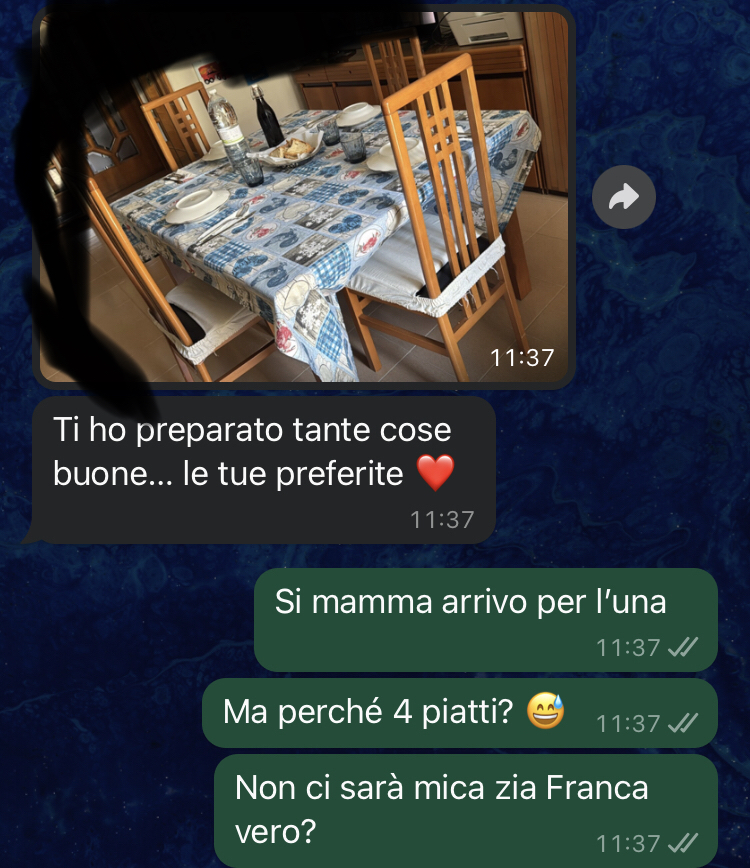 Ciao Commenti Memorabili, vorrei condividere con voi questa chat con mia mamma, una conversazione che per me è stata molto toccante e dolorosa, ma anche importante perché ha segnato un po’ un “nuovo inizio”. Scrivo per ricevere un po’ di conforto, ma anche con la speranza che raccontare ciò che sto vivendo possa aiutare chiunque stia affrontando qualcosa di simile. A volte, condividere il dolore è un primo passo per sentirsi meno soli. E in questo mondo ormai così veloce e social dove all’apparenza sembra tutto perfetto, vorrei dirvi che non è così e che ognuno nasconde i propri dolori. Cinque anni fa, una tragedia ha colpito profondamente la mia famiglia, lasciandoci tutti spezzati. Dopo quell’evento, ho sentito il bisogno di andarmene di casa. Era l’unico modo che avevo per cercare di ricostruirmi, di ritrovare un equilibrio, lontano da tutto ciò che mi legava al passato. Non è stato facile. E non lo è tuttora. Quando torno dai miei genitori per un pranzo o una visita, le emozioni si mescolano: l’affetto per loro, la nostalgia, ma anche il dolore che inevitabilmente riaffiora. Ogni gesto, ogni parola sembra portare con sé i ricordi di ciò che abbiamo perso e di ciò che non potrà più essere. Questa conversazione che vi mando è un esempio di quanto sia difficile andare avanti e, allo stesso tempo, di quanto sia importante provare a farlo, per noi stessi e per chi ci sta accanto. Mi auguro che queste parole riescano a trasmettere anche un briciolo di speranza: la speranza che, pur tra mille difficoltà, sia possibile ricostruire qualcosa, nonostante tutto. Ecco com’è andata l’ultima volta che ho provato a sedermi a tavola con loro…
