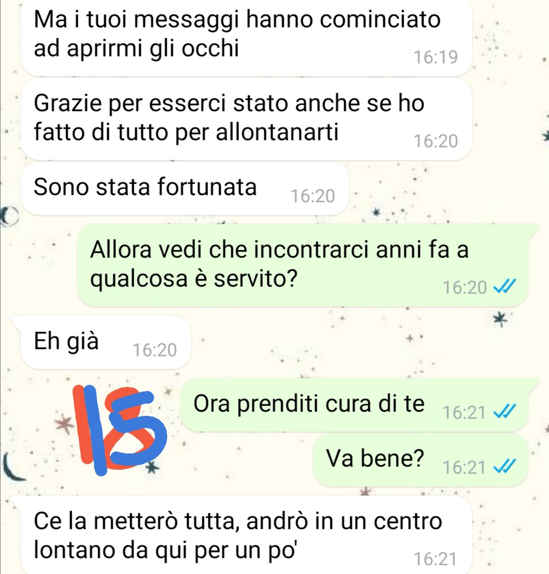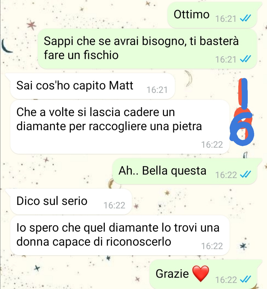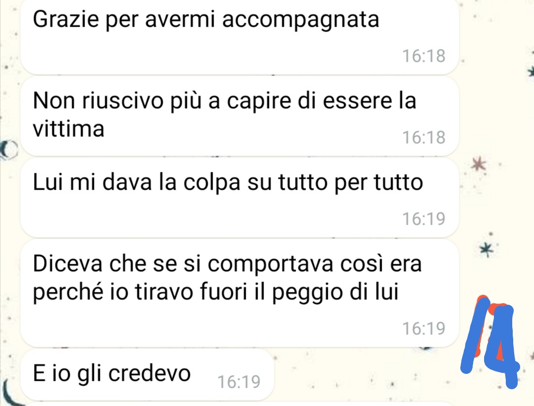 Racconta che una sera, dopo una cena tutti insieme, ha notato atteggiamenti che definisce tossici e persino violenti. Qualcosa gli ha fatto scattare un campanello d’allarme, tanto che ha deciso di scriverle per esprimere la sua preoccupazione. Quello che è seguito a quel messaggio è ciò che ha deciso di condividere, perché ciò che ha visto non lo ha lasciato indifferente. Più che per lui, ora è preoccupato per lei. E anche se la loro storia è finita, sente il bisogno di proteggerla, almeno da lontano.