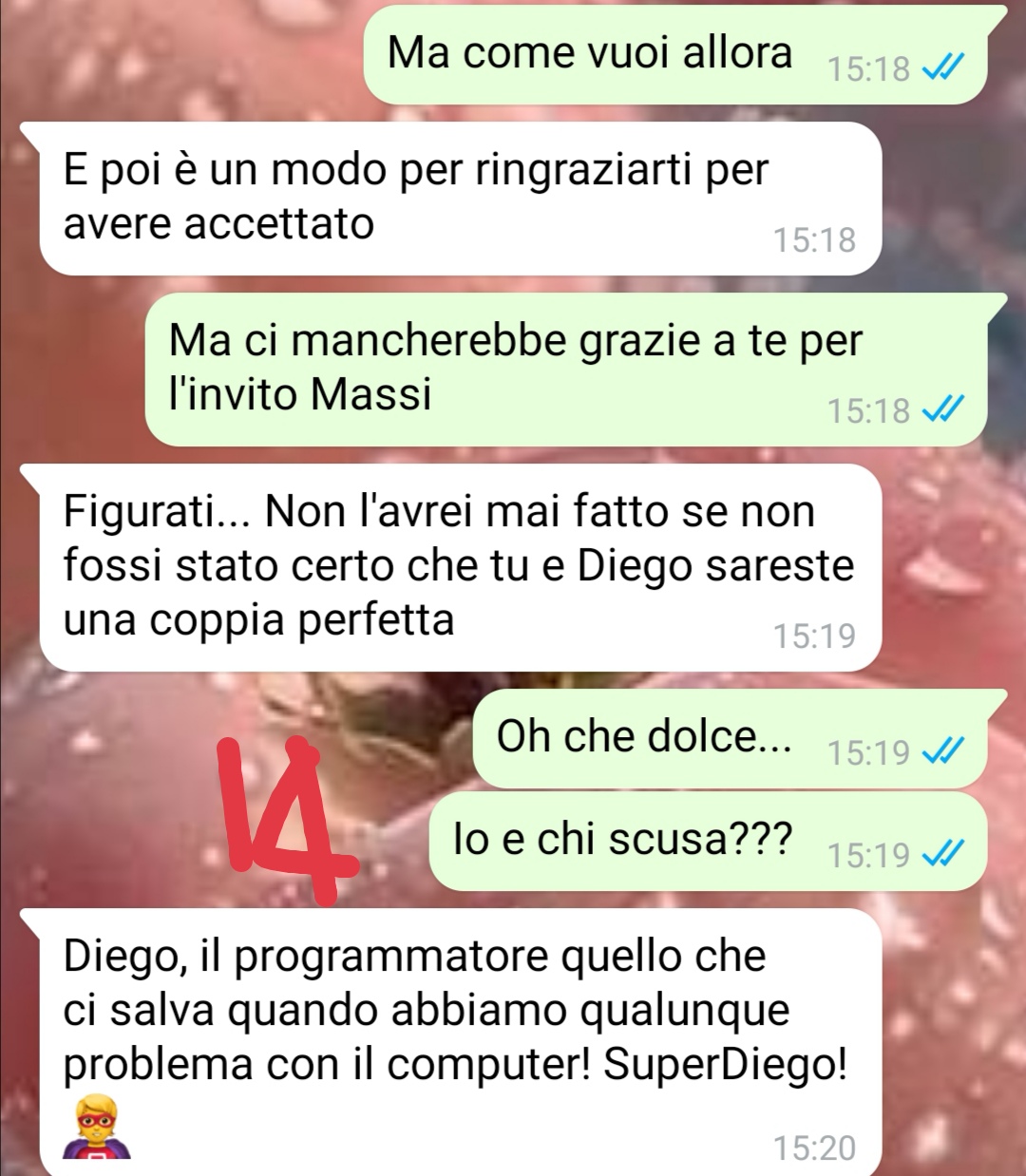 La nostra fan racconta di essere rimasta inebetita quando ha visto comparire il suo nome sul telefono. Sostiene che la probabilità di ricevere un suo messaggio le sembrasse pari a vincere alla lotteria senza aver comprato il biglietto. Quando realizza che a scriverle è proprio lui, entra nel panico e inizia a confondersi persino digitando le risposte in chat.
