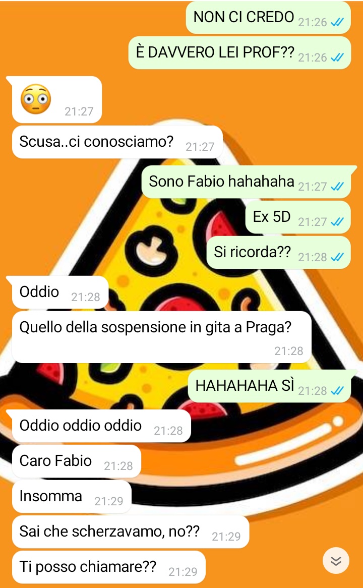 Il nostro fan racconta un episodio avvenuto quando aveva circa 23 anni e lavorava come fattorino per le pizze. All’epoca, dopo aver conseguito il diploma, non aveva particolare interesse a proseguire gli studi o a cercare un impiego a tempo pieno, trovando soddisfazione in quel lavoro che gli permetteva di muoversi agilmente per la città. Vivendo in un centro urbano di dimensioni medio-grandi, riusciva a completare le consegne con relativa rapidità, concedendosi anche qualche pausa per bere qualcosa tra un ordine e l’altro. La routine quotidiana procedeva normalmente fino a quando si è trovato coinvolto in una situazione del tutto inaspettata.